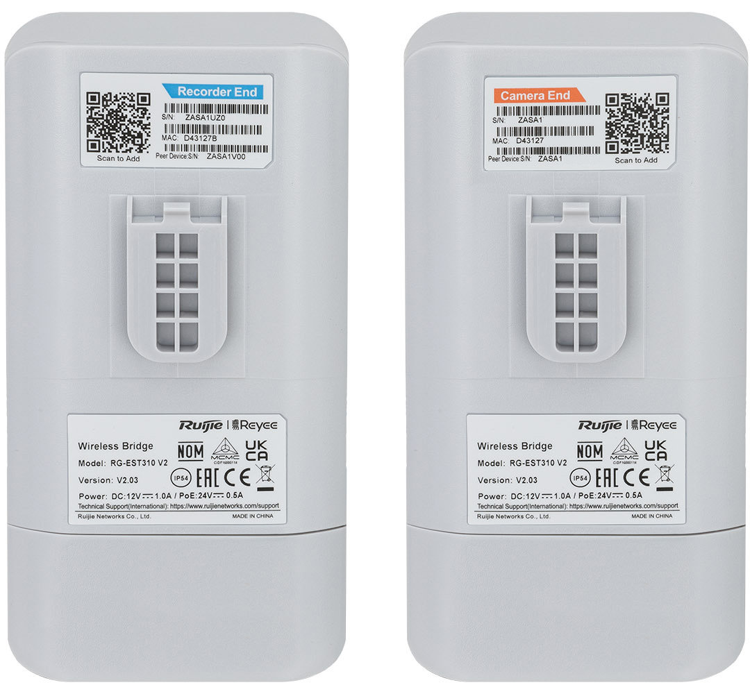 Bezprzewodowy most RG-EST310-V2 pozwala utworzyć stabilne połączenie Wi-Fi pomiędzy dwoma punktami położonymi w odległości maks. 1000 m od siebie. Urządzenie może zostać wykorzystane np. w sieciach CCTV do montażu kamer IP w miejscach, do których trudno jest doprowadzić przewód Ethernet (np. windy, place budowy, hale fabryczne, magazyny). Dzięki zyskowi anteny wynoszącej 10 dBi, dużej mocy wyjściowej wynoszącej 26 dBm oraz wysokiej czułość modułu radiowego, urządzenie umożliwia tworzenie długich, wydajnych oraz stabilnych połączeń bezprzewodowych. Urządzenie pozwala na bezpieczną transmisję danych, zabezpieczoną szyfrowaniem: WPA-PSK/WPA2-PSK/WPA-WPA2-PSK.