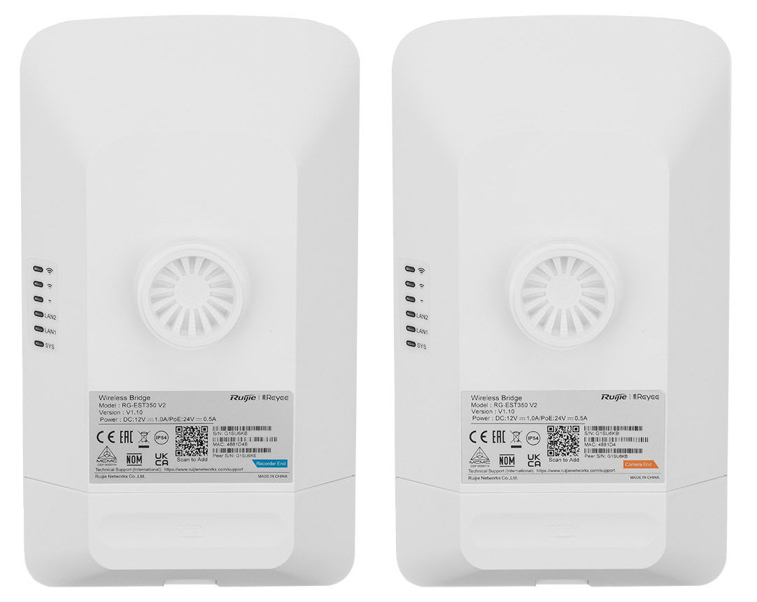 Bezprzewodowy most RG-EST350-V2 pozwala utworzyć stabilne połączenie Wi-Fi pomiędzy dwoma punktami położonymi w odległości maks. 5 km od siebie. Urządzenie może zostać wykorzystane np. w sieciach CCTV do montażu kamer IP w miejscach, do których trudno jest doprowadzić przewód Ethernet (np. windy, place budowy, hale fabryczne, magazyny). Dzięki zyskowi anteny wynoszącej 15 dBi, dużej mocy wyjściowej wynoszącej 26 dBm oraz wysokiej czułość modułu radiowego, urządzenie umożliwia tworzenie długich, wydajnych oraz stabilnych połączeń bezprzewodowych. Urządzenie pozwala na bezpieczną transmisję danych, zabezpieczoną szyfrowaniem: WPA-PSK/WPA2-PSK/WPA-WPA2-PSK.
