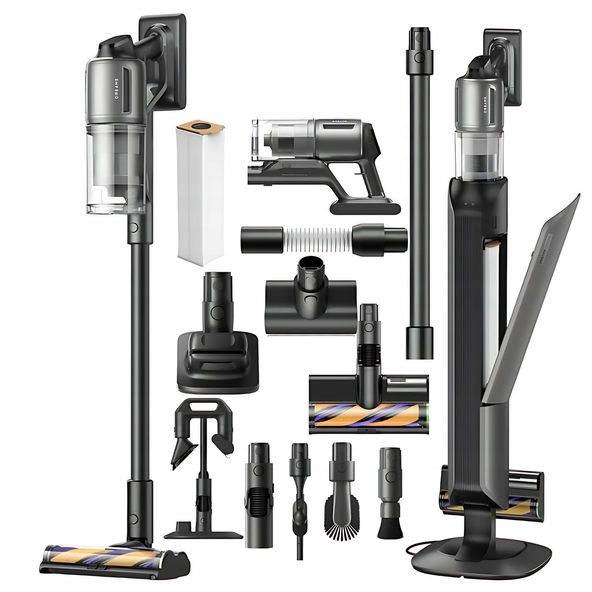 Dreame Z30 Station został zaprojektowany z myślą o wygodzie użytkowania na co dzień. Wymienne worki na kurz oraz zmywalne części sprawiają, że czyszczenie odkurzacza po zakończonym sprzątaniu jest szybkie i proste. Dodatkowo uchwyt na akcesoria pozwala na łatwe przechowywanie, dzięki czemu wszystkie końcówki są zawsze pod ręką, gotowe do użycia.