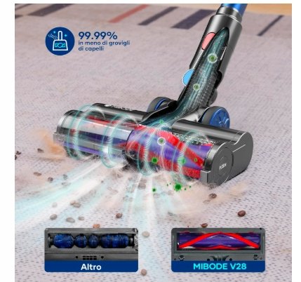 Odkurzacz MIBODE V28 wyposażony jest w nowoczesny silnik bezszczotkowy, który zapewnia wysoką moc ssania, umożliwiając skuteczne usuwanie kurzu, sierści zwierząt i innych zanieczyszczeń. Intuicyjny panel dotykowy umożliwia łatwe przełączanie między trybami pracy i dostosowanie mocy ssania do rodzaju powierzchni. Dzięki ergonomicznemu uchwytowi oraz lekkiej konstrukcji, manewrowanie urządzeniem jest wyjątkowo komfortowe, a możliwość odłączenia rury sprawia, że można go z łatwością przekształcić w poręczny odkurzacz ręczny.