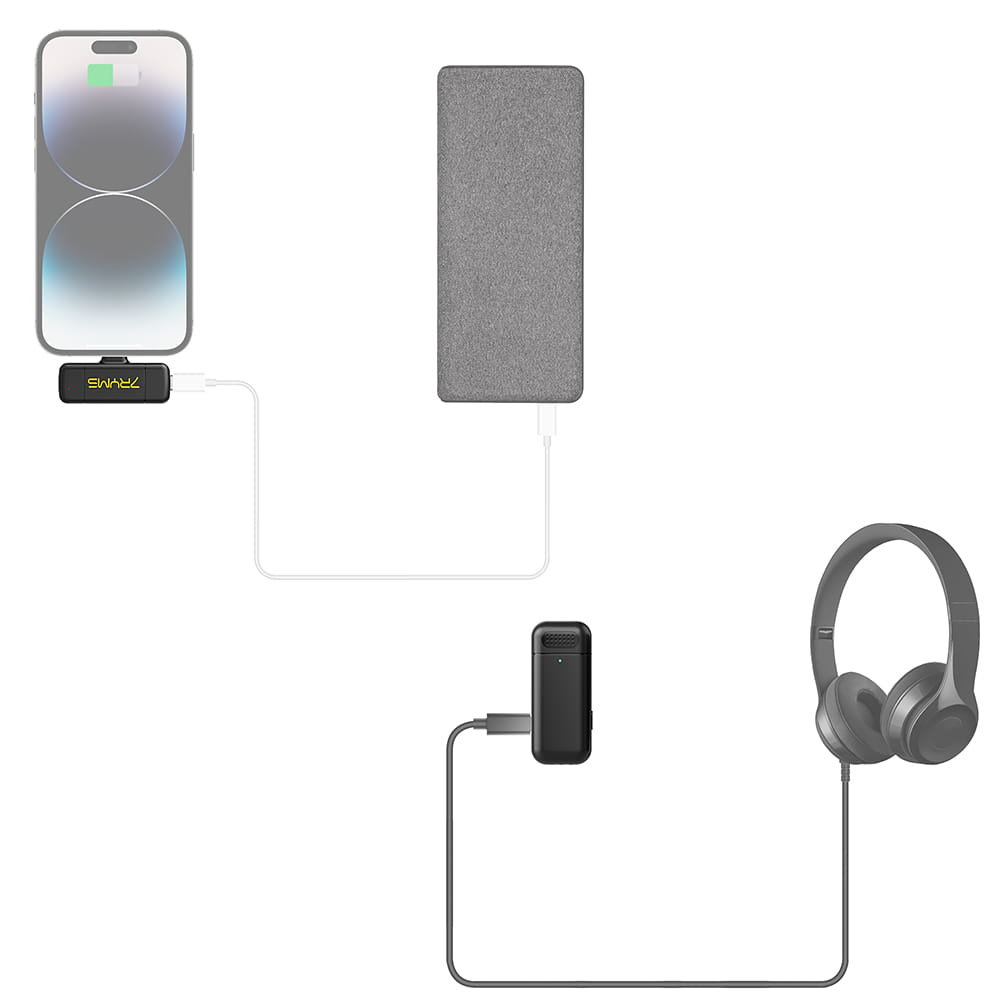 Bezprzewodowy zestaw mikrofonowy dla dwóch osób (dwa nadajniki i odbiornik) przeznaczony do urządzeń marki Apple ze złączem Lightning - iPhone, iPad i in. Komunikacja radiowa 2,4 GHz na odległość do 50 m, aktywna redukcja szumu, możliwość prowadzenia bieżącego odsłuchu oraz praktyczna stacja dokująca z funkcją powerbanku.