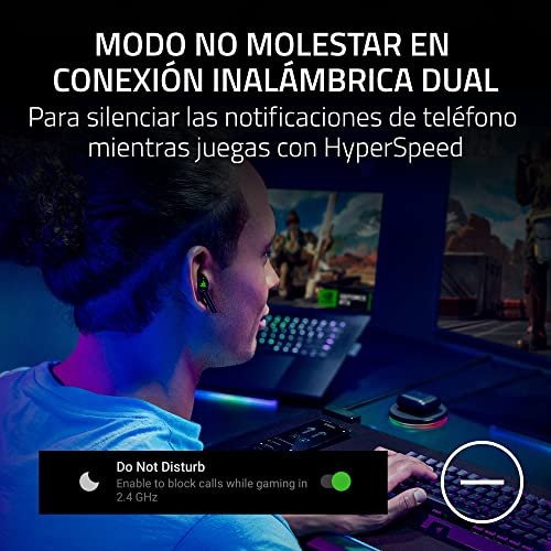 Razer Hammerhead Pro HyperSpeed – bezprzewodowy zestaw słuchawkowy do gier z Razer Chroma RGB (HyperSpeed Wireless, aktywna redukcja szumów, Chroma RGB, Bluetooth 5.3) Czarny Najlepszy wieloplatformowy bezprzewodowy zestaw słuchawkowy zapewniający bezproblemową łączność z komputerem, Playstation, smartfonem lub urządzeniem mobilnym. Ciesz się niespotykaną swobodą i opanuj rozgrywkę międzyplatformową, podłączając Razer Hammerhead Pro HyperSpeed do komputera, konsoli, smartfona lub mobilnego urządzenia do gier, aby cieszyć się potężnym dźwiękiem bez przerw. Bezprzewodowy dźwięk klasy gamingowej z Razer HyperSpeed zapewniający wiodącą w branży wydajność przy niskim opóźnieniu. Oferując zoptymalizowane połączenie bezprzewodowe 2,4 GHz za pośrednictwem dołączonego klucza USB-A/USB-C, Razer HyperSpeed Wireless zapewnia dźwięk o niskim opóźnieniu, który spełni wymagania konkurencyjnych gier. Regulowana aktywna redukcja szumów w celu poprawy zanurzenia i uwagi. Zaawansowane mikrofony sprzężenia zwrotnego i przesyłania dalej monitorują dźwięk wokół Ciebie, zapewniając kontrolę w czasie rzeczywistym. Wyeliminuj hałas podczas intensywnych sesji grania lub użyj suwaka aplikacji, aby dostosować ilość niezbędnego dźwięku, jaki wpuszczasz. Szybkie bezprzewodowe ładowanie zapewnia wygodę codziennego użytku. Nowe etui do ładowania bezprzewodowego zapewnia dodatkowe 24 godziny pracy na baterii. Synchronizuj z podkładką ładującą Razer lub inną ładowarką bezprzewodową albo użyj portu USB-C do ładowania przewodowego. Tryb Nie przeszkadzać Wyciszanie powiadomień Bluetooth podczas grania z funkcją HyperSpeed. Skoncentruj się podczas gry lub pracy dzięki nowemu trybowi Nie przeszkadzać. Po podłączeniu do telefonu i innego źródła dźwięku włącz je, aby połączenia i wiadomości tekstowe nie zakłócały słuchania.