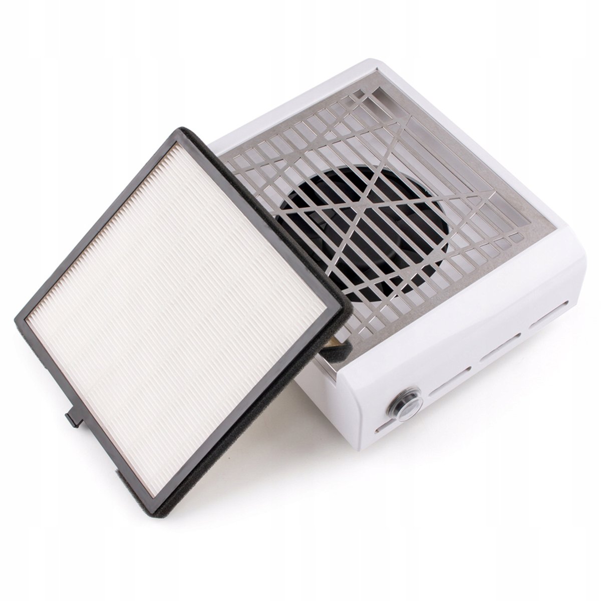 Urządzenie wyposażone jest w niezwykle mocny a zarazem energooszczędny wiatrak, który zapewnia doskonałe pochłanianie wszelkich ubytków podczas zabiegów kosmetycznych paznokci. Cała instalacja dostosowana jest do długotrwałej pracy przy niskim zużyciu prądu.