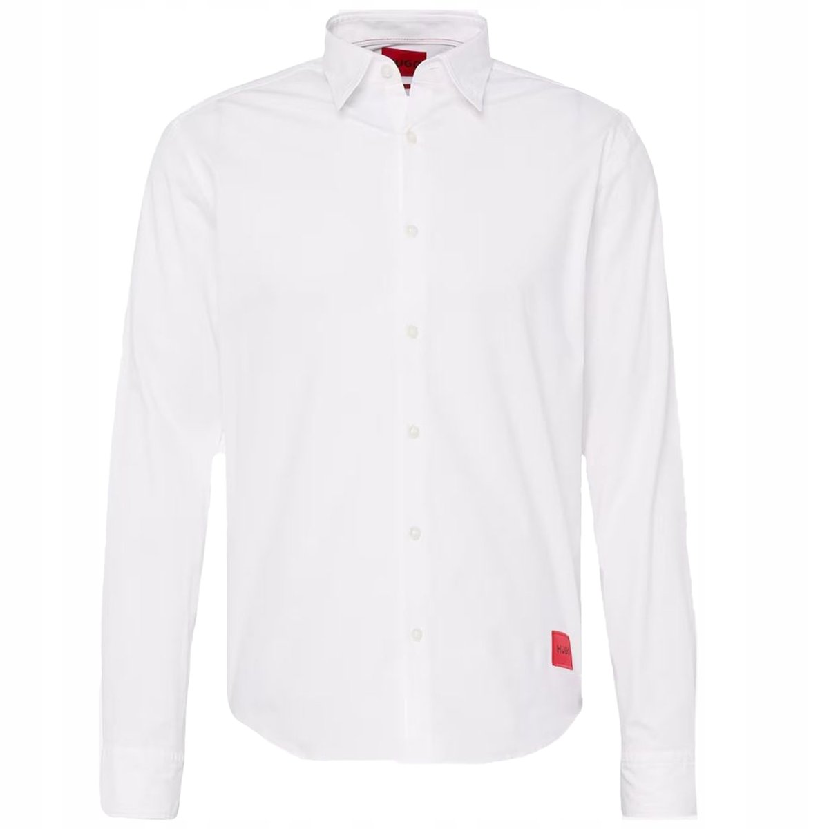 Biała Koszula Męska Elegancka Ładna Czerwone Logo HUGO BOSS bawełniana r.XL w kolorze białym to wybór łączący w sobie niebanalny styl oraz ogromny komfort noszenia. Sprawdzi się jako baza różnych stylizacji, gdyż doskonale komponuje się z innymi elementami garderoby.