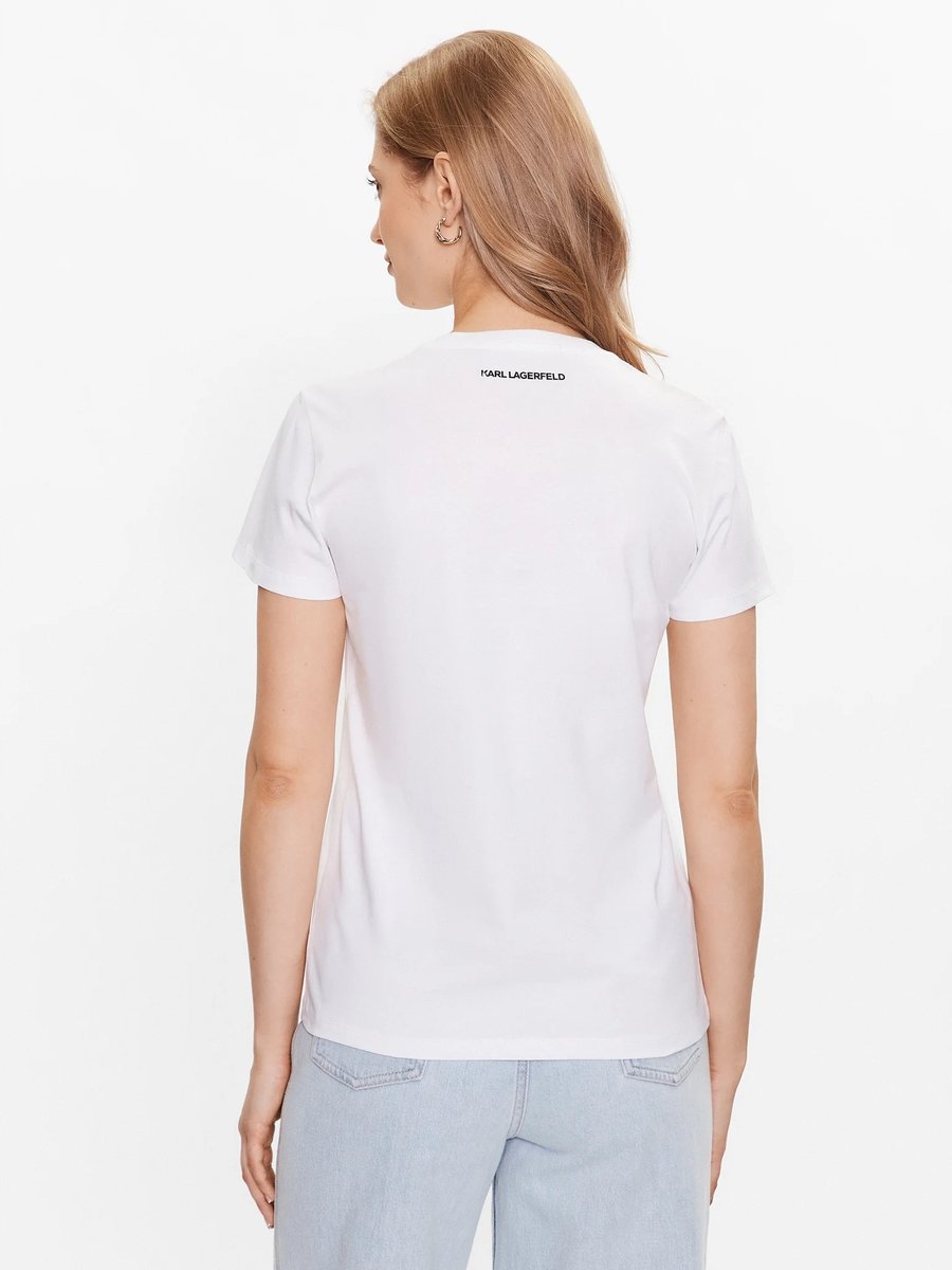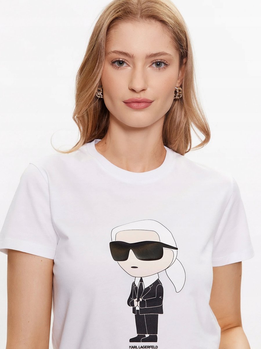 Biała Koszulka Damska T-shirt Duże Logo Karl Lagerfeld Oversize Elegancka L w kolorze białym to wybór łączący w sobie niebanalny styl oraz ogromny komfort noszenia. Sprawdzi się jako baza różnych stylizacji, gdyż doskonale komponuje się z innymi elementami garderoby.