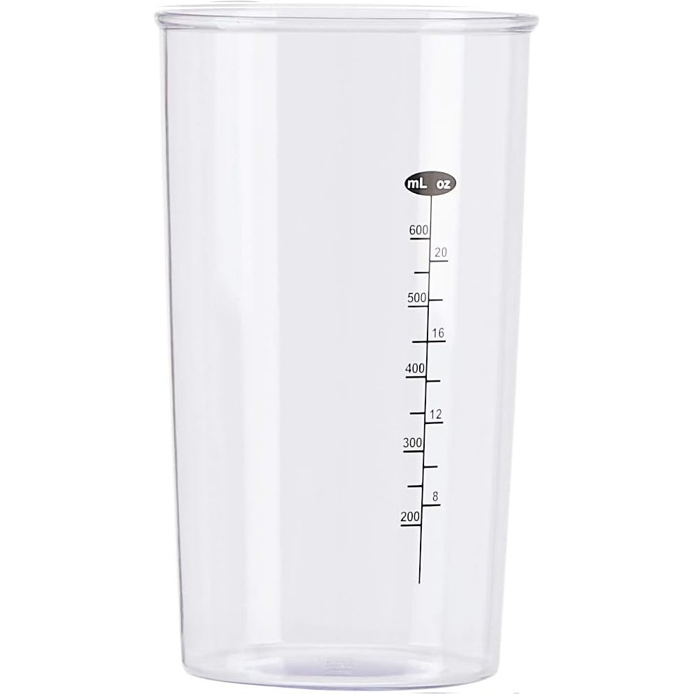 W zestawie urządzenia znajduje się przezroczysta miarka o pojemności 600 ml, która zawiera skalę odmierzania płynnych składników w jednostkach ml/oz.