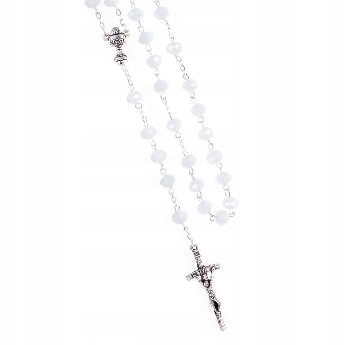 ✅ Pierwszokomunijny różaniec wykonany jest z białych, kryształowych koralików