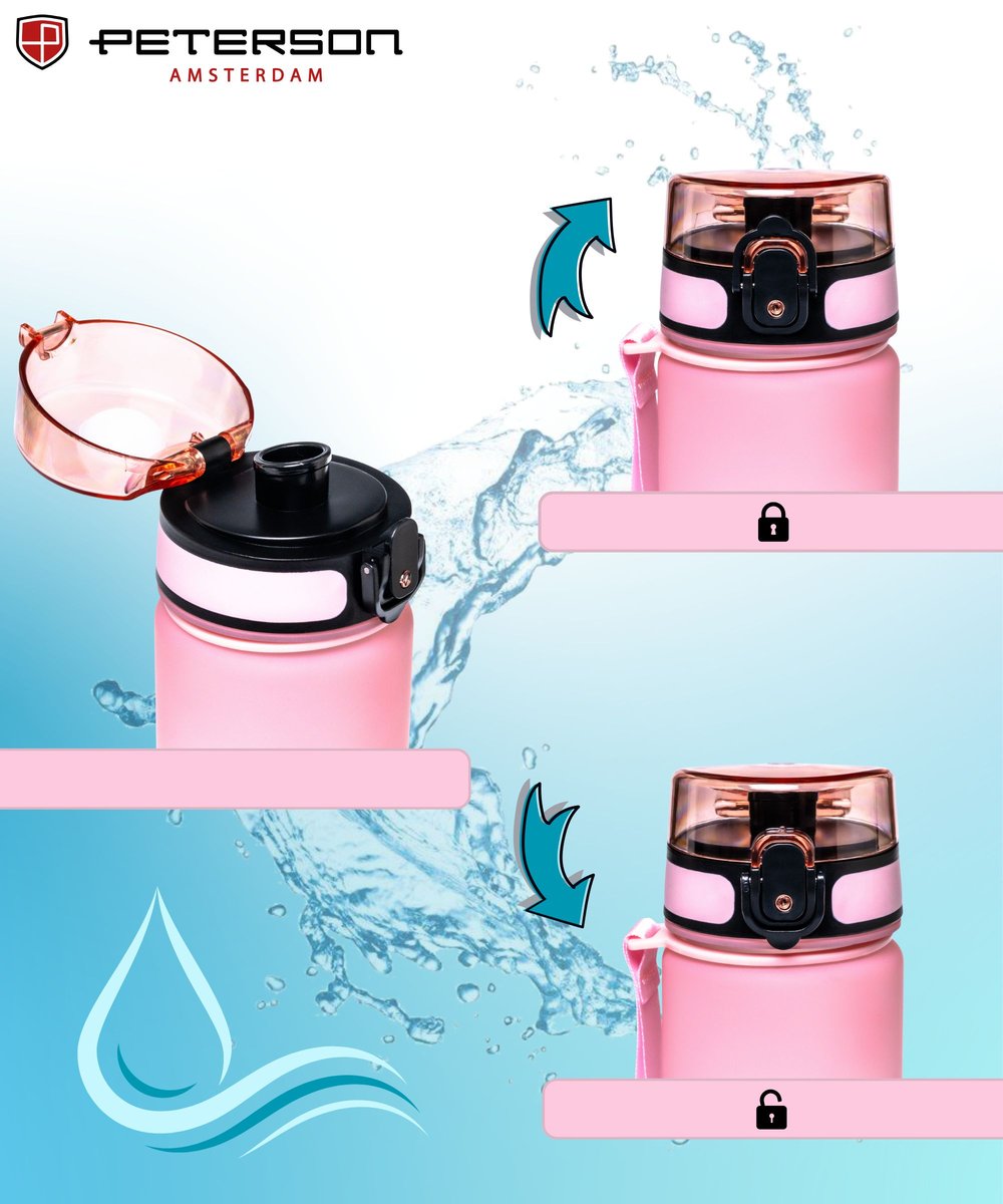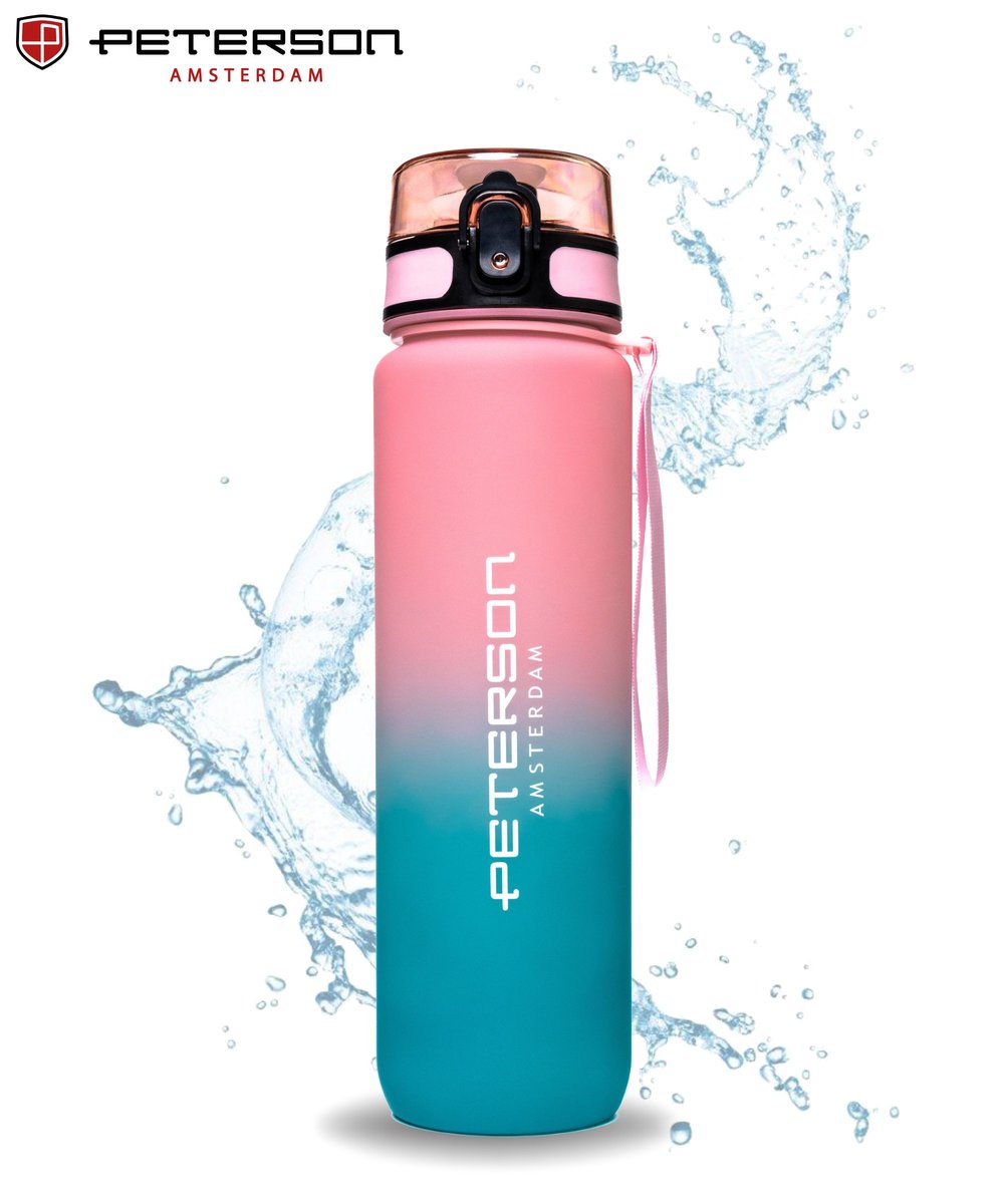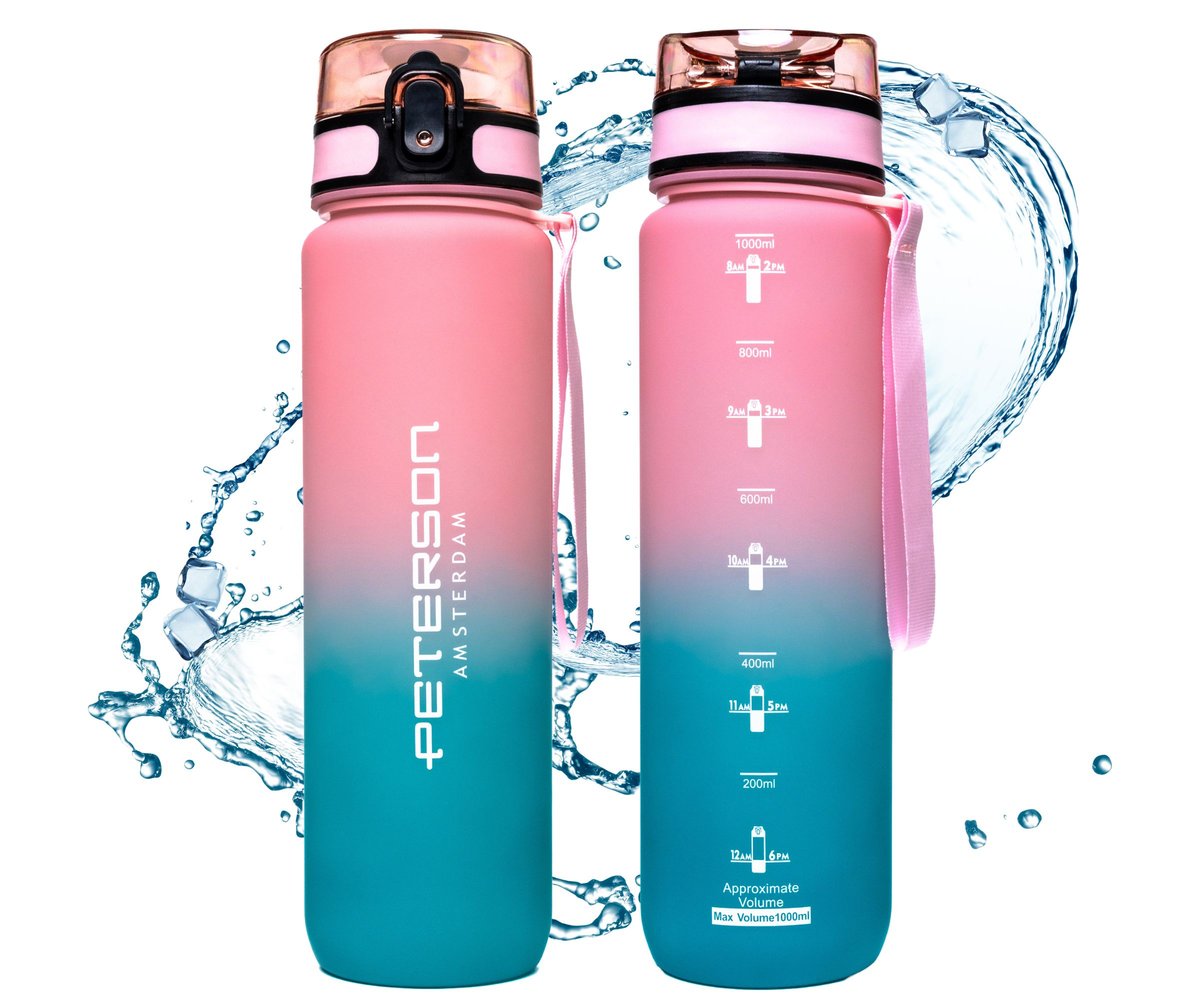 BIDON SPORTOWY BUTELKA NA WODĘ 1L MOTYWACYJNA SZCZELNY TRITAN BEZ BPA RÓŻOWY PETERSON