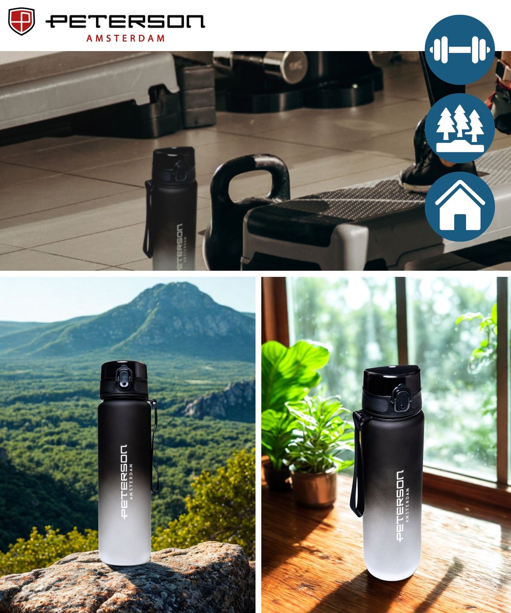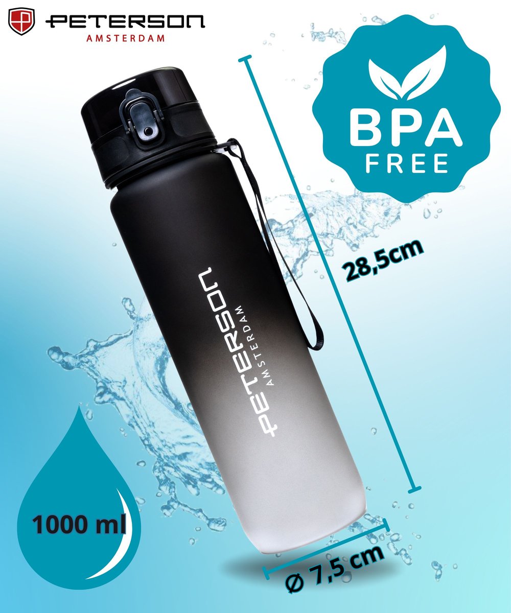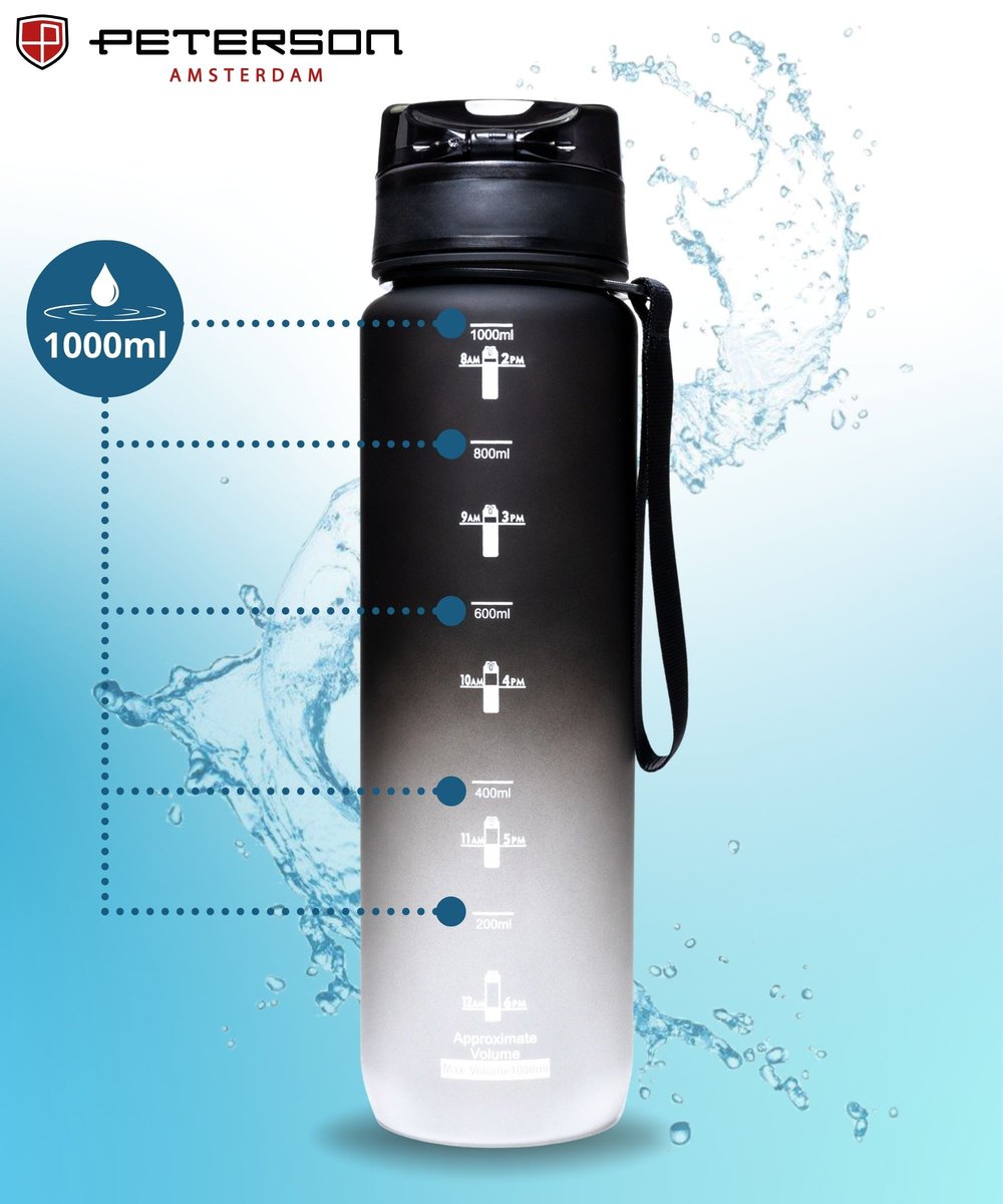 BIDON SPORTOWY BUTELKA NA WODĘ MOTYWACYJNA 1L TRITAN SZCZELNY BEZ BPA CZARNY PETERSON