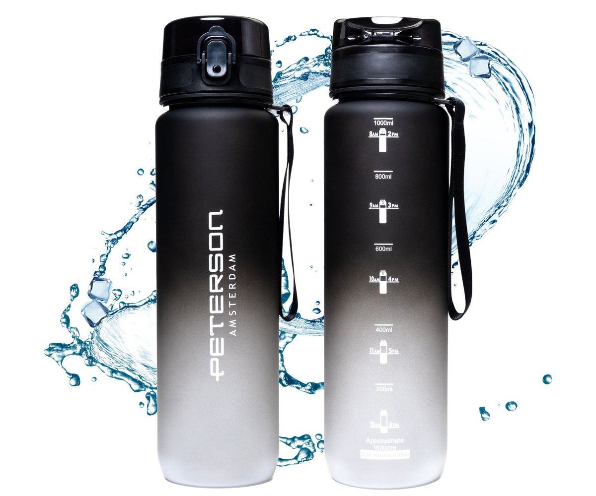 Właśnie zrecenzowałem BIDON SPORTOWY BUTELKA NA WODĘ MOTYWACYJNA 1L TRITAN SZCZELNY BEZ BPA CZARNY PETERSON