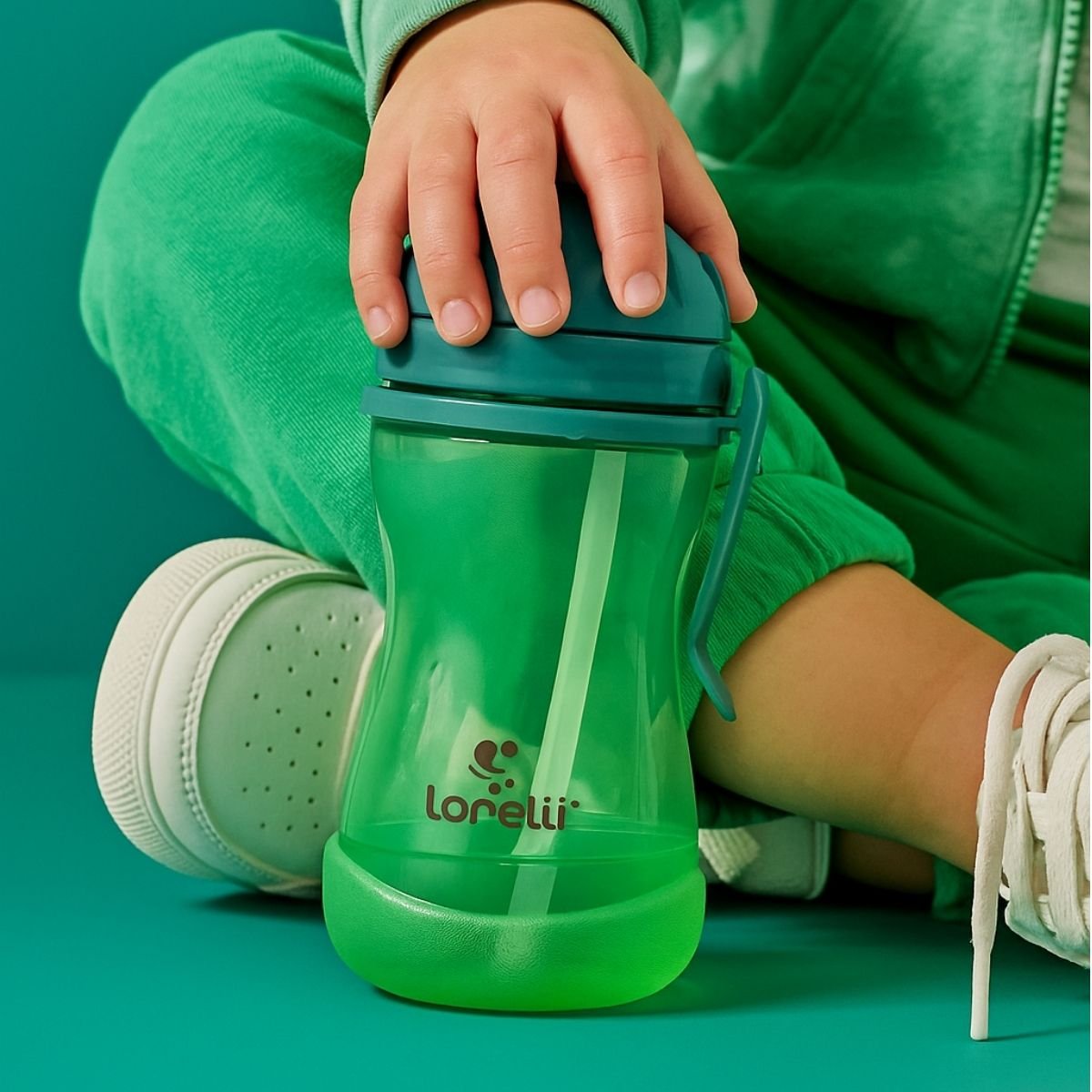 Butelka sportowa z uchwytem o pojemności 360 ml to praktyczne rozwiązanie dla dzieci powyżej 12 miesiąca życia. Wygodna w codziennym użytkowaniu, bezpieczna i higieniczna – sprawdzi się w domu, na spacerze i w podróży. Dzięki obrotowej osłonce ustnik zawsze pozostaje czysty, a miękka słomka ułatwia picie.Butelka sportowa dla aktywnych maluchów
