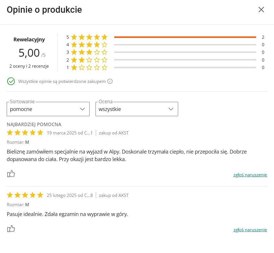Właśnie zrecenzowałem Bielizna termiczna termoaktywna Tencel + Merino z Australii komplet, Rozmiar M
