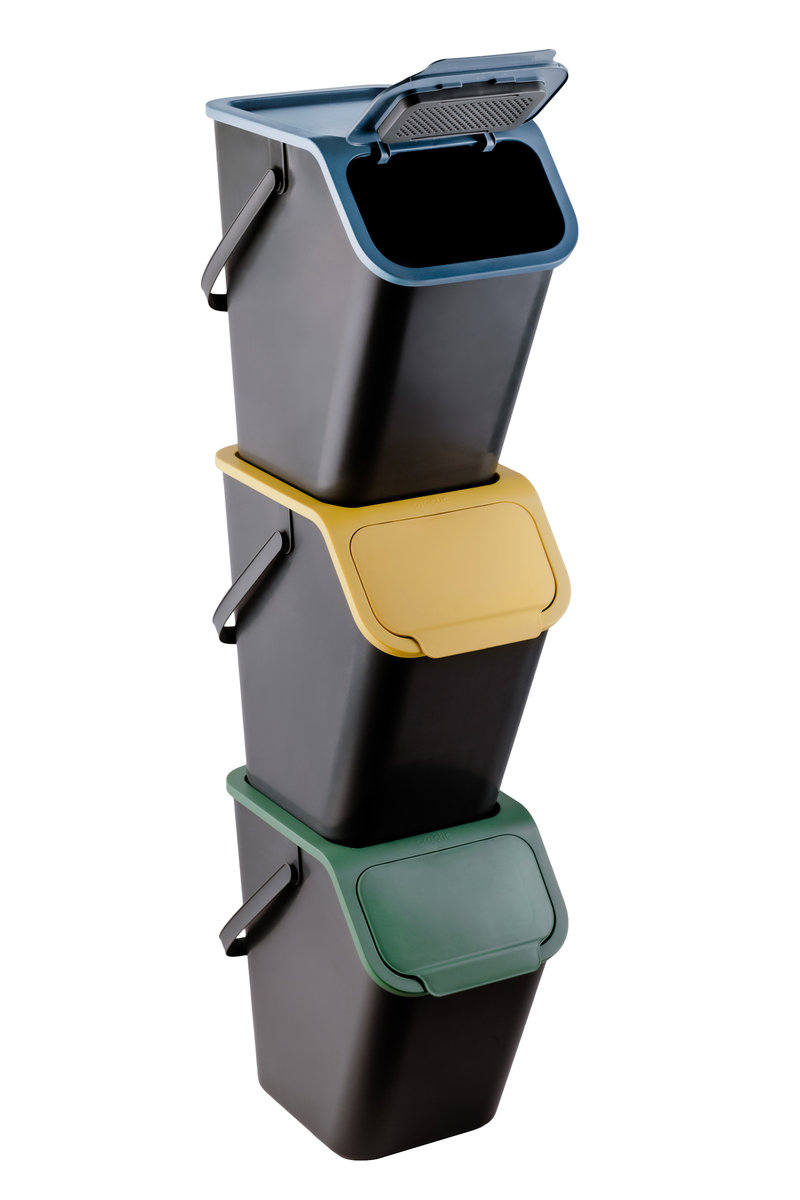 Dzięki swoim niewielkim wymiarom idealnie zmieści się też do szafki pod zlew. Jego modułowość pozwoli na połączenie go w potrójny zestaw, który można ułożyć jeden na drugim, dzięki czemu zajmie niewiele miejsca. Zaokrąglone ranty pojemnika ułatwiają jego czyszczenie dzięki czemu używanie worków jednorazowych nie będzie konieczne.