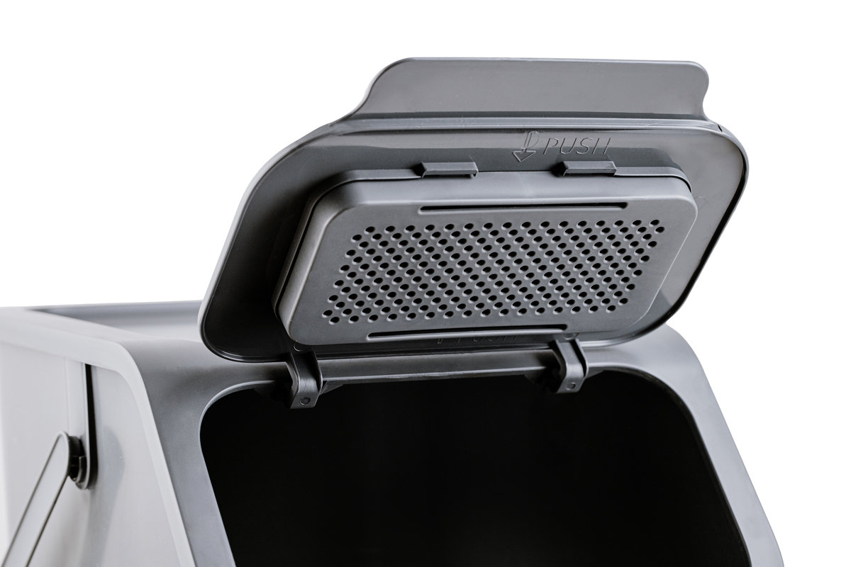 Koniec z nieprzyjemnymi zapachami wydobywającymi się z kosza! - nasze nowoczesne pojemniki pomogą rozwiązać problem segregacji w otwartych strefach mieszkalnych. W pokrywie znajduje się pojemnik na filtr zapachowy, dzięki czemu możesz go postawić w strefie gdzie przyjmujesz gości.
