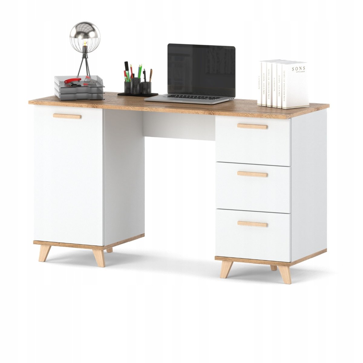 | Nazwa: | Biurko BIAŁE 3 Szuflady 138CM Meble OSLO Styl Skandynawski Uniwersalne |