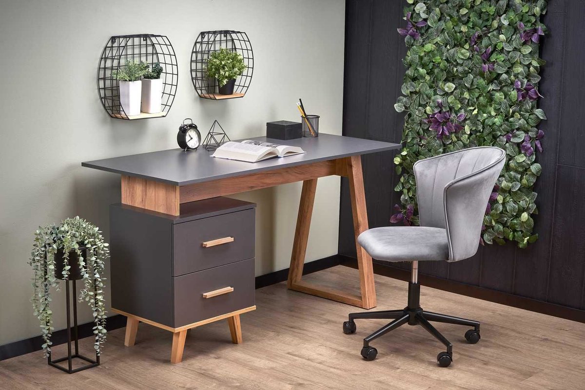 Biurko Exena Dąb Wotan/ Antracyt Wyjątkowe biurko do pracy i nauki Biurko Exena to doskonałe rozwiązanie zarówno dla osób pracujących w domu, jak i w biurze. Jego praktyczne wymiary (134-165-60/78 ...