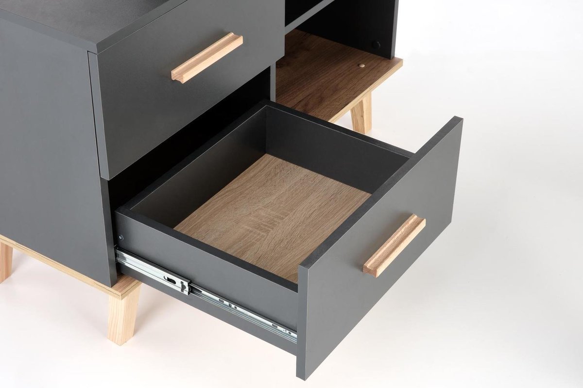 Kolor antracyt mat i dąb wotan nadaje biurku eleganckiego i nowoczesnego wyglądu. Pasuje do różnych stylów wnętrz, dodając im charakteru i stylu.Biurko Exena to nie tylko praktyczne i funkcjonalne rozwiązanie, ale również estetyczne i trwałe. Dzięki niemu możesz cieszyć się komfortem pracy i mieć pewność, że będzie Ci służyć przez wiele lat. Niezależnie od tego, czy pracujesz w domu, czy w biurze, to biurko spełni Twoje oczekiwania i zapewni Ci idealne warunki do skutecznej i wydajnej pracy.