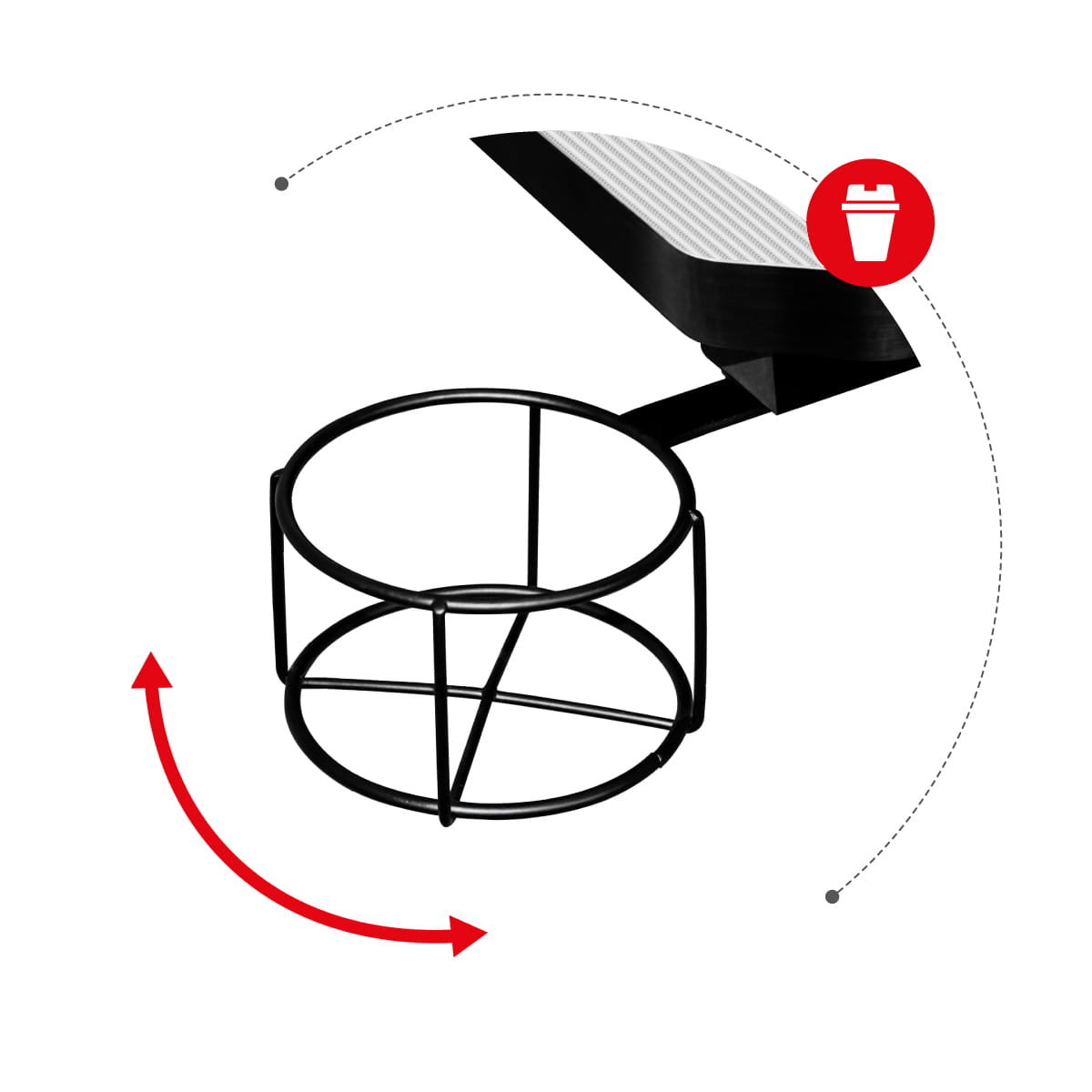 Specjalny, wygodny uchwyt na napoje. Łatwo i bezpiecznie można przechowywać w nim puszki, butelki, czy kubki. To rozwiązanie pozwoli uniknąć zalania sprzętu. Uchwyt można łatwo i szybko złożyć- schować pod biurko.