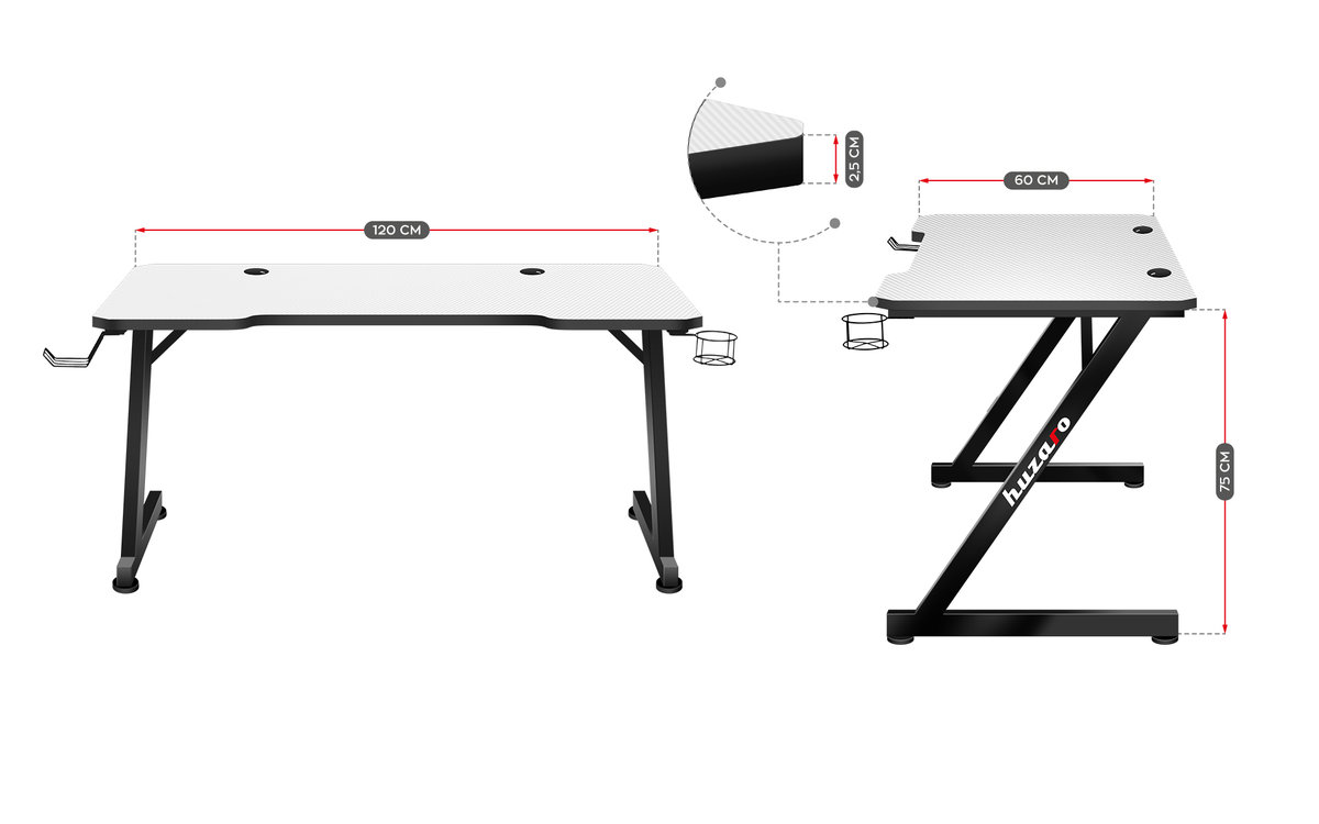 Biurko młodzieżowe gamingowe czarne 120 cm Huzaro Hero 2.5 White z przepustem kablowym Cechy szczególne: Efektowny design i niezwykle praktyczne rozwiązania Uchwyty na słuchawki i kubek ...