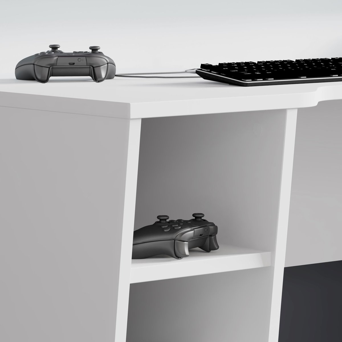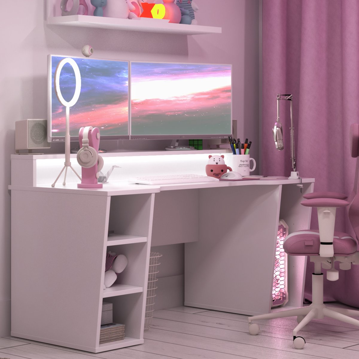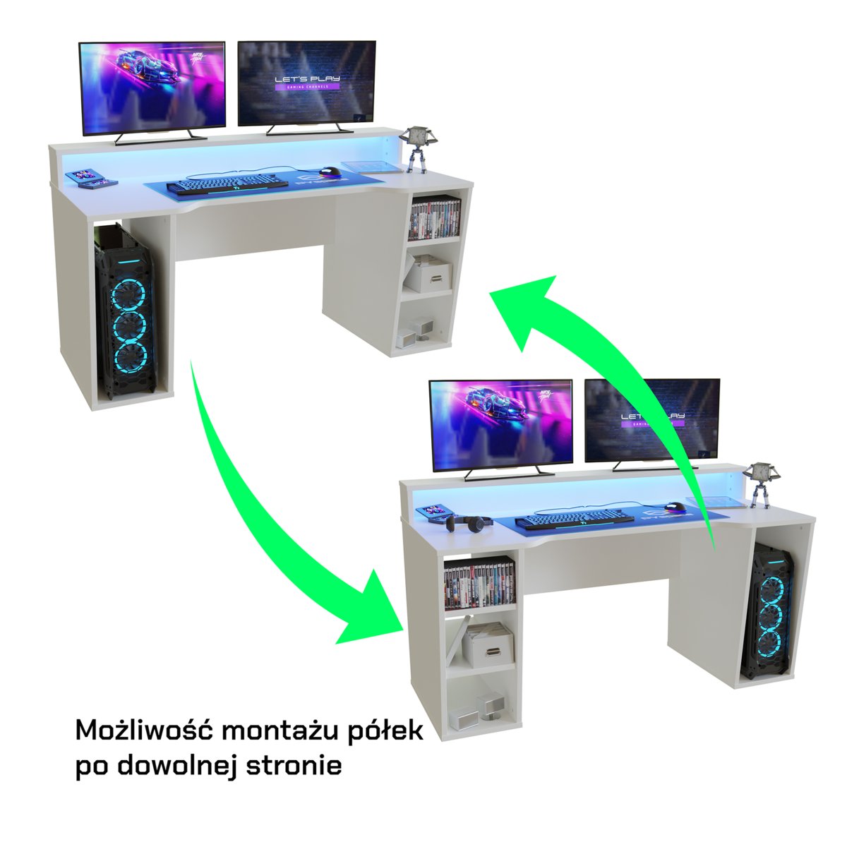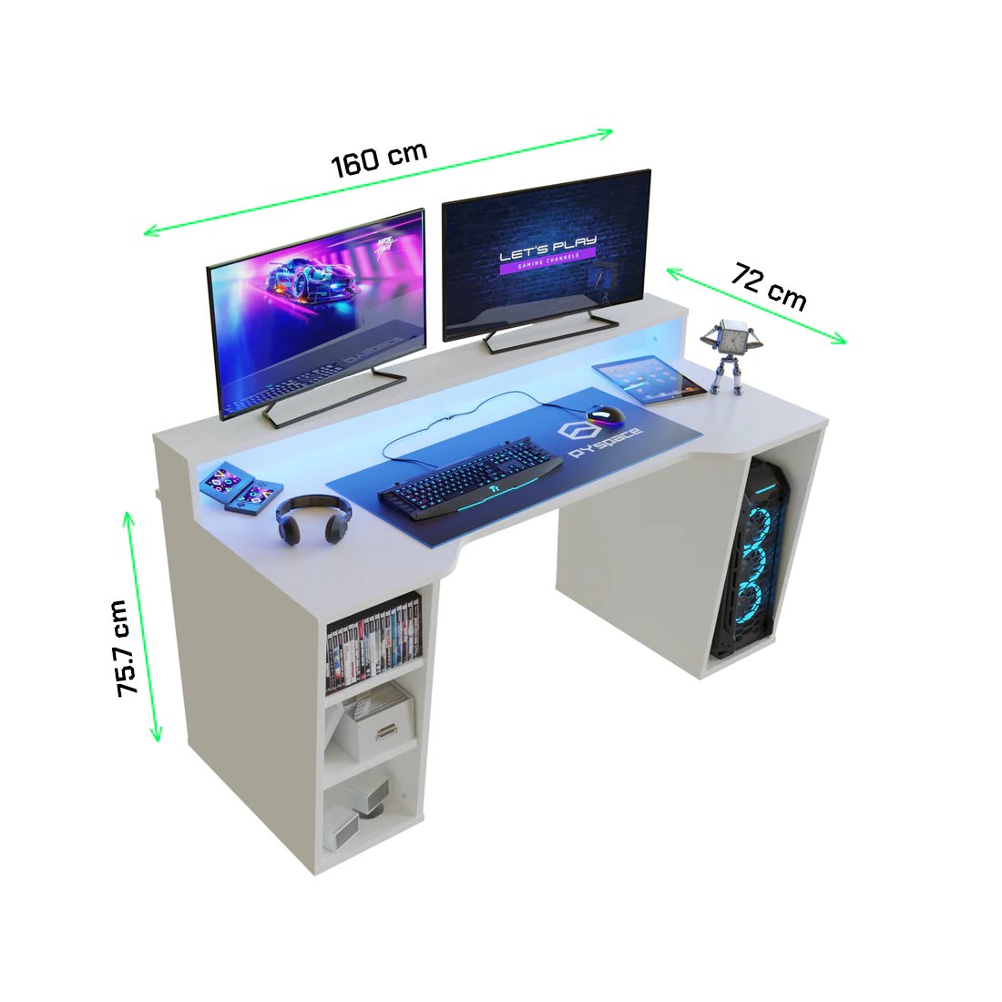 Biurko gamingowe SUPERNOVA211 LED - Białe Biurko gamingowe z dużym białym blatem o szerokości 160 cm, na którym zmieścisz wszystkie swoje gamingowe peryferia. Posiada wielobarwne oświetlenie LED oraz