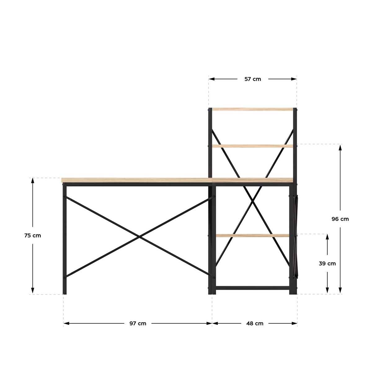 | Nazwa: | Biurko Leader 5.9, montaż z lewej i prawej strony, cztery półki, 145 x 57 x 120 cm, Drewno |