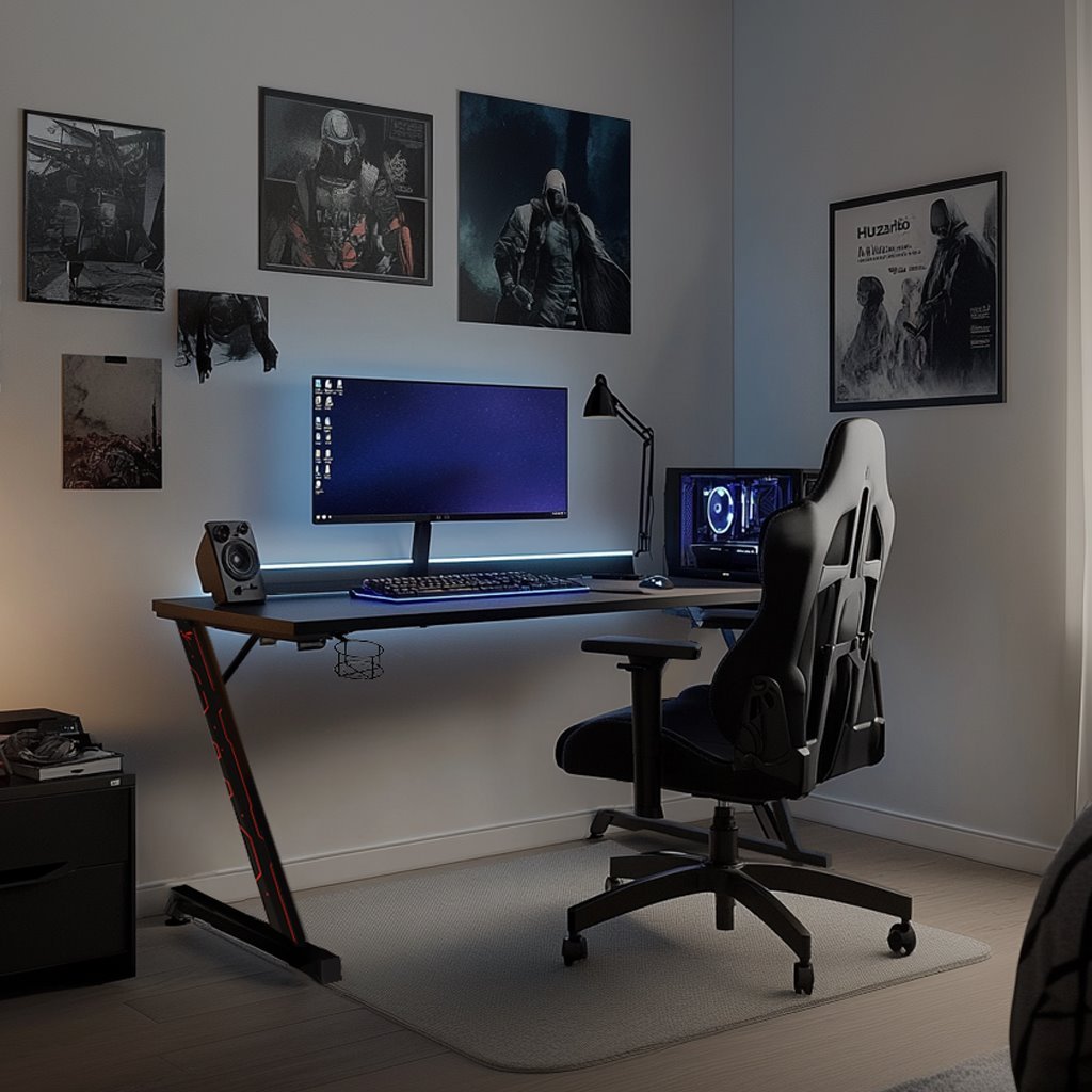 Wytrzymały blat w kolorze czarnym pomieści wszystkie niezbędne rzeczy dla gracza lub ucznia. Biurko posiada grubą, metalową ramę gwarantującą pełną stabilność nawet podczas najbardziej emocjonujących rozgrywek! W zestawie trzy akcesoria, które sprostają oczekiwaniom nawet najbardziej wymagających graczy: uchwyt na kubek, uchwyt na słuchawki i uchwyt na kontroler! Specjalny otwór na kable pozwoli Ci zachować porządek. Blat biurka został pokryty prestiżową powłoką carbon-flex, dzięki czemu biurko sprosta oczekiwaniom nawet najbardziej wymagających graczy i miłośników stylu!