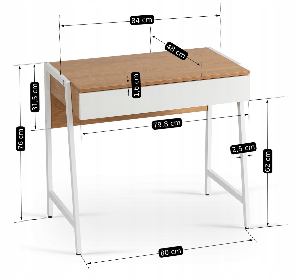 ✅ Idealnie wysokie - blat biurka został umiejscowiony na takiej wysokości, aby komfortowo siedziało się przy nim na większości rodzajów krzeseł i foteli.
