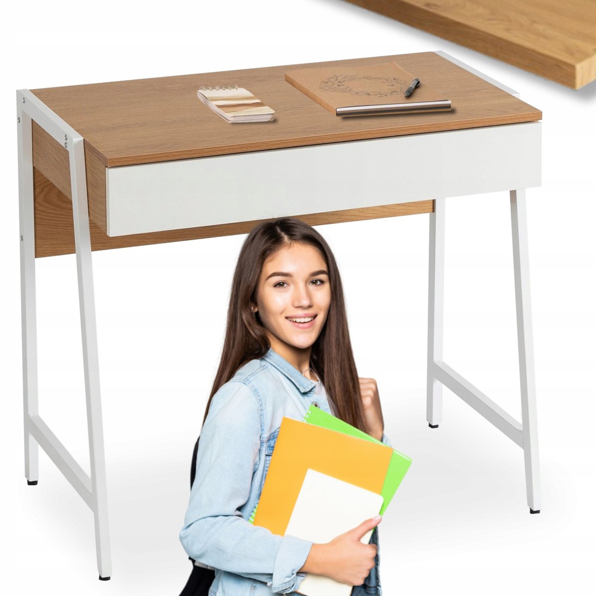 | Nazwa: | Biurko Małe Z Szufladami Loft Dla Dziecka Młodzieżowe Wąskie Dąb Białe MORI |