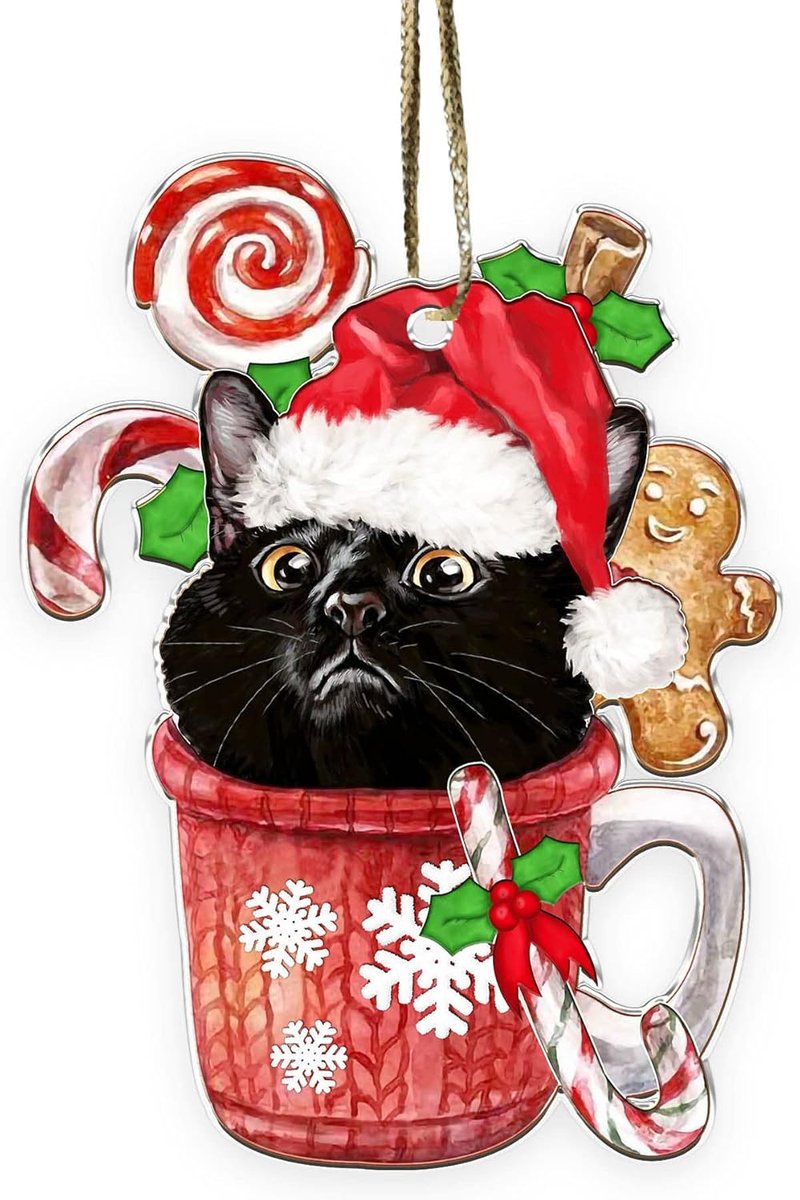 Black cat Christmas Tree hanging OrnamentsMeowy Christmas Tree Hanging OrnamentsBlack Cat Chistmas Gift for Cat LoversFunny Gift for Cat Lovers Christmas Tree OrnamentBlack cat lover home and ...