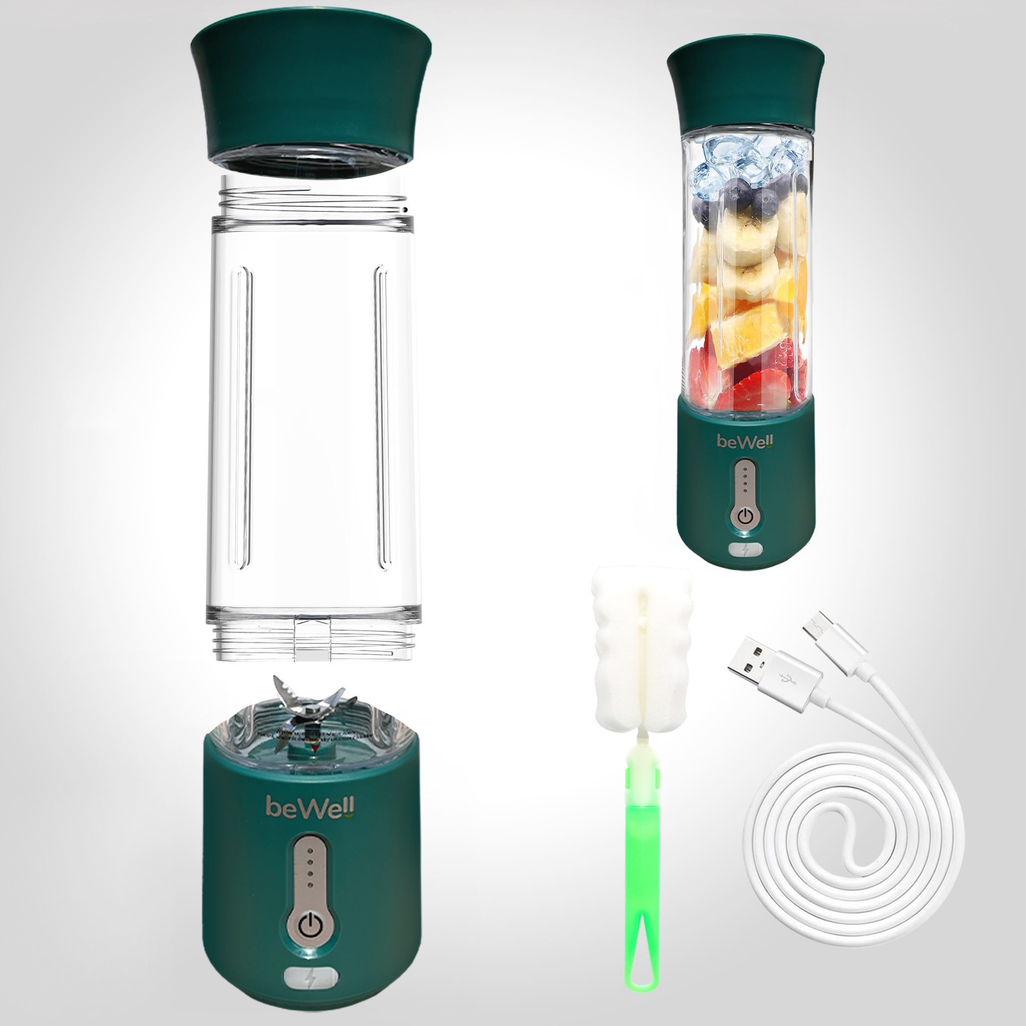 ☑️ blender bezprzewodowy beWell o pojemności 500ml, w kolorze butelkowa zieleń