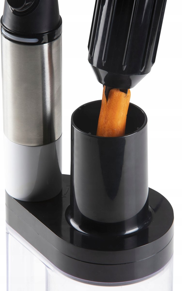 - Specjalna pokrywa z zębatkami do ostrzy spiralizatora i otworem do napełniania