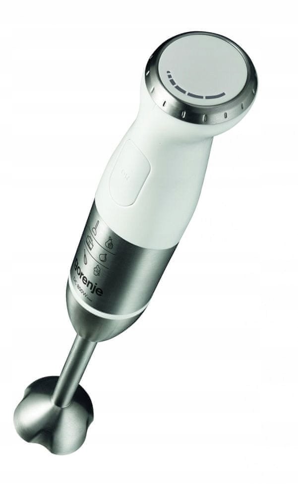Blender ręczny o maksymalnej mocy 800 W. Wyposażony w poczwórne ostrze. Wytrzymały silnik prądu stałego.