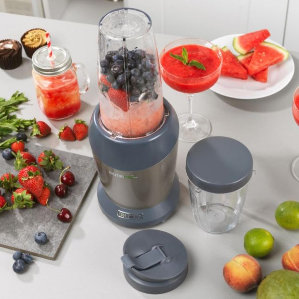 Blender kielichowy do koktajli Petra NutriPro Max 1000W, szaryOryginalny blender NutriPro Max od Petra MOC 1000W Zestaw akcesoriów Można myć w zmywarce 2 kielichy 2 pokrywki 50 przepisów na zdrowe ...