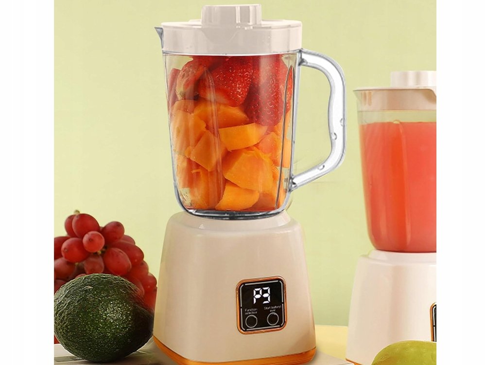 Dzbanek blendera wykonany jest z odpornego tworzywa sztucznego, które jest lekkie i łatwe do czyszczenia. Ostrza ze stali nierdzewnej gwarantują efektywne rozdrabnianie owoców, warzyw i lodu. Solidna podstawa zapewnia stabilność podczas pracy, a dodatkowo urządzenie posiada port ładowania USB.