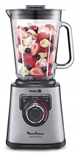 Produkt nie jest zapakowany: Wymiary: 215 x 192 x 406 (mm) Produkt zapakowany: Wymiary: 386 x 226 x 304 (mm). Łącznie ze szpatułką do mieszania. 2 ostrza do góry dla efektu cyklonowego i ciągnięcia składników na ostrza i 2 ostrza w dół, aby uniknąć pozostawania części w dnie szkła. 3 różne programy na podświetleniu: smoothie, autoclean i Ice Crush; ponadto masz możliwość ręcznego sterowania shake'em. System chłodzenia powietrzem, który zapewnia bezpieczniejszą pracę i pozwala uniknąć przegrzania silnika i nieoczekiwanych przerw. Technologia Powelix: 4 duże ostrza zapewniają gładkie i szybkie oraz jednorodne rezultaty. Zapewnia optymalną wydajność do 30% szybciej niż nasz LM31XX. Całkowita pojemność 2 l (pojemność robocza 1,5 l).