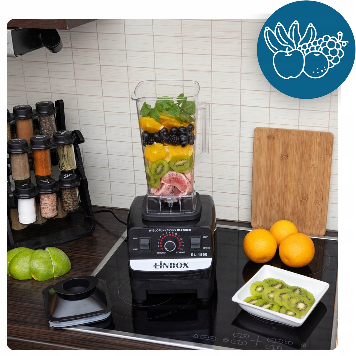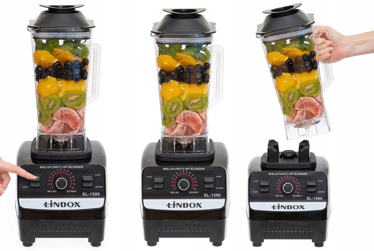 Ten blender to prawdziwy kombajn kuchenny! Może pełnić funkcję blendera, młynka, sokowirówki i kruszarki do lodu.