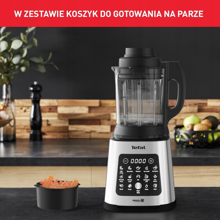 Odkryj kulinarną różnorodność, dzięki blenderowi Perfectmix Cook marki Tefal! Blenduj na zimno: smoothie, mleczne koktajle i desery, podgrzewaj i blenduj na ciepło: kompoty, zupy-kremy, gotuj zupy z makaronem i gulasze, a także gotuj na parze: zdrowe ryby, warzywa i owoce morza. Wszystko to zmieniając w prosty sposób ustawienia na dotykowym panelu sterowania! Dzięki dużej mocy i wielu automatycznym programom blender Perfect Cook oferuje szerokie możliwości kulinarne!