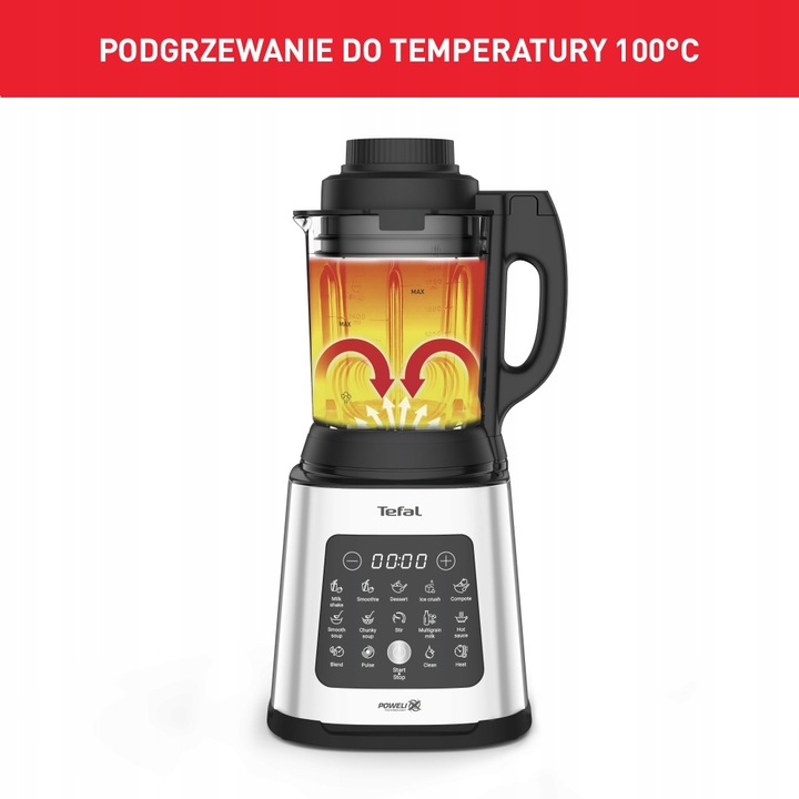 Dzięki blenderowi Tefal nie tylko przygotujesz swoje ulubione smoothie, ale też podgrzejesz potrawy takie jak: zupy-kremy, zupy z makaronem i gulasze.