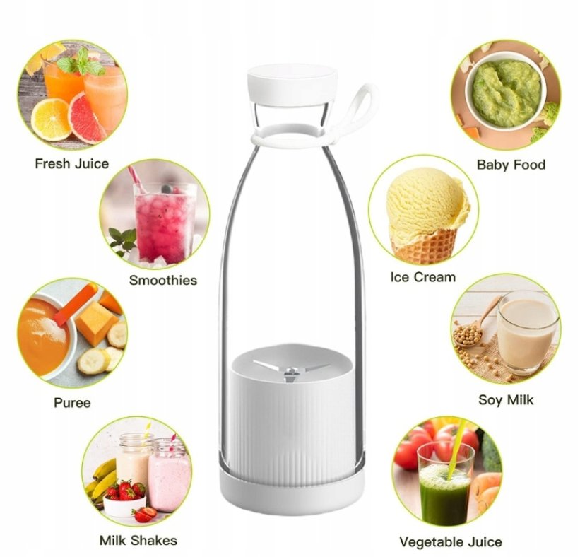 | Nazwa: | Blender przenośny butelkowy , elektryczna mini sokowirówka 420 ml USB biały |