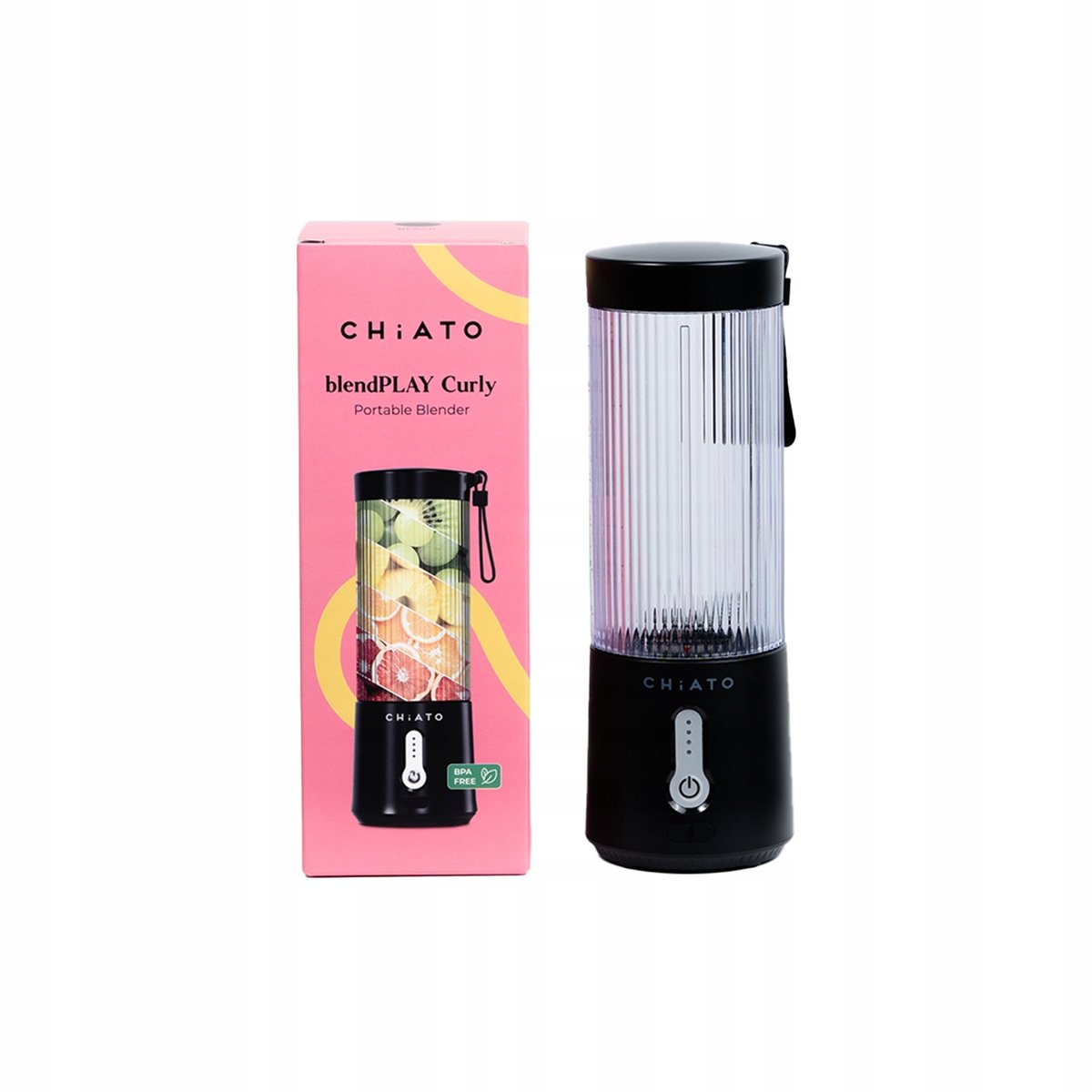 Przygotowywanie ulubionych smoothie, koktajli mlecznych, soków, sosów, dressingów czy shake’ów proteinowych jeszcze nigdy nie było takie proste – ani nie sprawiało tyle frajdy! Nowy, przenośny blender o wyjątkowej mocy „blendPLAY Curly” od CHiATO idealnie sprawdzi się w podróży. Ze względu na niewielką wagę może towarzyszyć Ci w każdej sytuacji, a czytelne diody i pojedynczy przycisk zapewniają niezrównaną łatwość obsługi. Dobra zabawa i multum możliwości – gdziekolwiek, kiedykolwiek i bez najmniejszego wysiłku.