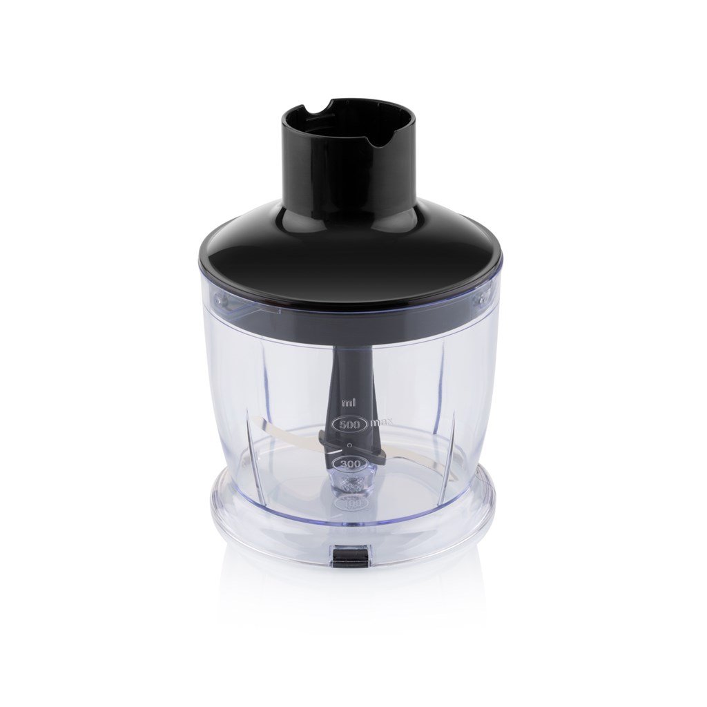 Wytrzymała nasadka miksująca ze stali nierdzewnej przyda się podczas miksowania kremowych zup lub sosów bezpośrednio w garnku lub podczas tworzenia zdrowych koktajli w pojemniku o pojemności 600 ml. Nasadkę mieszającą ze stali nierdzewnej można całkowicie zdemontować i łatwo ją wyczyścić. W zestawie znajduje się również końcówka do ubijania ze stali nierdzewnej, która pomoże Ci ubić idealną bitą śmietanę i białka jaj. Rozdrabniacz z nożami ze stali nierdzewnej z pojemnikiem o pojemności 500 ml idealnie sprawdzi się do szybkiego siekania cebuli, warzyw czy siekania ziół na idealne pesto.