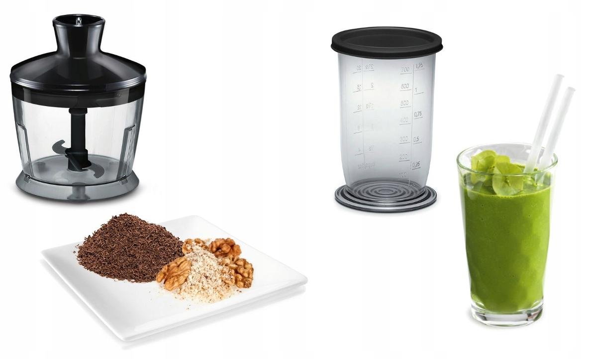 | Funkcje blendera: | rozdrabnianie, ubijanie, mielenie twardych produktów, siekanie owoców i warzyw |