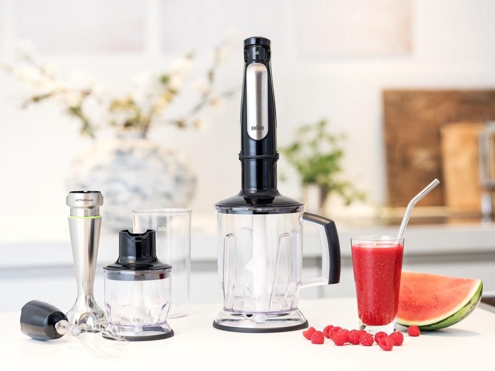 Blender Braun MQ 7045Nowy blender ręczny Braun został zaprojektowany z myślą o szybkim i łatwym przyrządzaniu zdrowych posiłków dla rodziny i przyjaciół. Wyposażony w pierwsza w świecie technologię ACTIVBlade. Innowacyjna stopa z ruchomymi ostrzami zapewnia 2,5 razy większa strefę aktywnego blendowania i znacznie ułatwia przygotowywanie posiłków. Nowa technologia Braun Easy SmartSpeed daje możliwość sterowania prędkością za jednym dotknięciem. Po prostu naciśnij przycisk, aby intuicyjnie dostosować moc bez przerywania pracy.