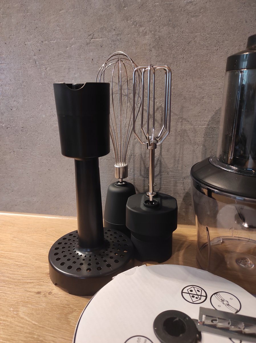 - Końcówki: Do blendowania, Do puree, Do rozdrabniania, Do ubijania