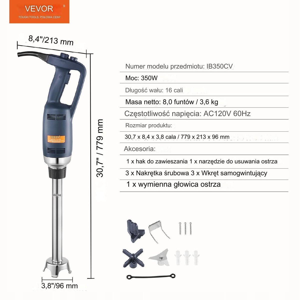 | Nazwa: | Blender ręczny mikser gastronomiczny 350W 40,64 cm |