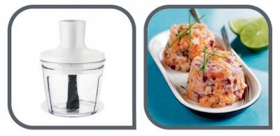 Warzywa i owoce przeznaczone na sałatkę zostaną w szybki i dokładny sposób posiekane za pomocą tego blendera. W porównaniu z siekaniem ręcznym, obróbka metodą mechaniczną przyniesie lepsze efekty, zarówno pod względem wizualnym, jak i praktycznym.