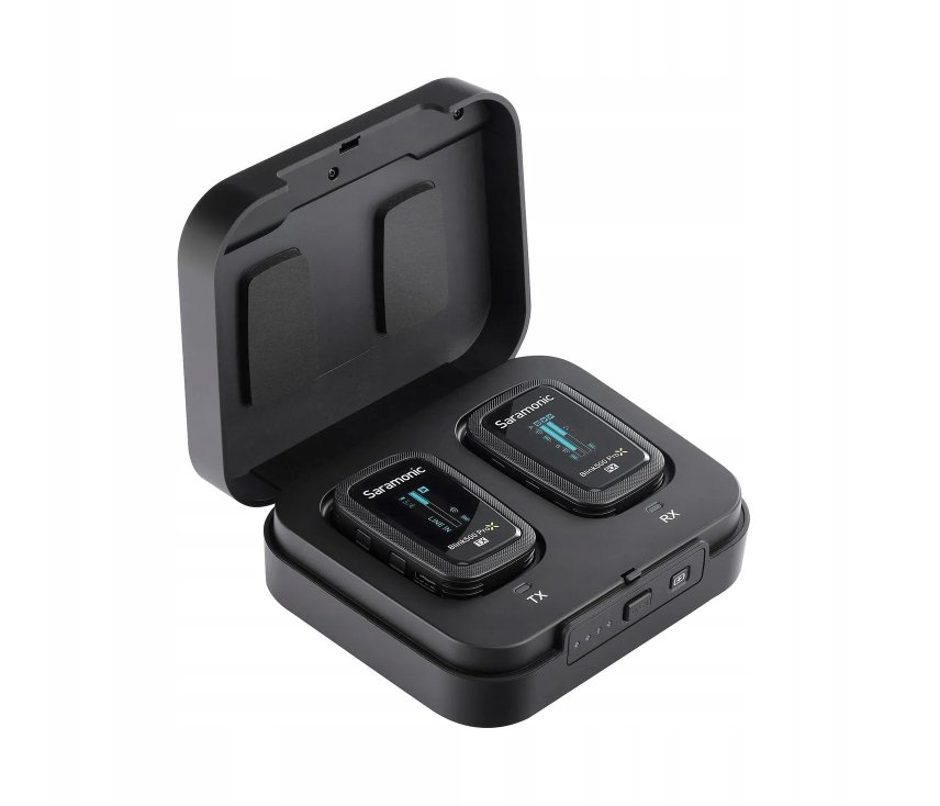 Zestaw do bezprzewodowej transmisji dźwięku Saramonic Blink500 ProX B1 (RX + TX) to świetny wybór dla vlogerów, dziennikarzy, youtuberów, tiktokerów i twórców internetowych. W pudełku znajdziesz nadajnik( niestety nie działa), odbiornik, unikalne etui ładujące, mikrofon krawatowy i dodatkowe akcesoria. To wszystko, czego potrzebujesz, aby zapewnić sobie profesjonalną jakość nagrań. Odbiornik połączysz z aparatami, kamerami, rejestratorami dźwięku lub smartfonami wyposażonymi w gniazdo mini jack 3,5 mm. Niewielkie mikroporty z dużymi ekranami LCD zapewnią zasięg transmisji wynoszący 100 m. Zestaw wyróżnia się ultraniskim poziomem latencji oraz świetnym stosunkiem sygnału do szumu. Mikroporty z łatwością naładujesz za pomocą etui ochronnego.