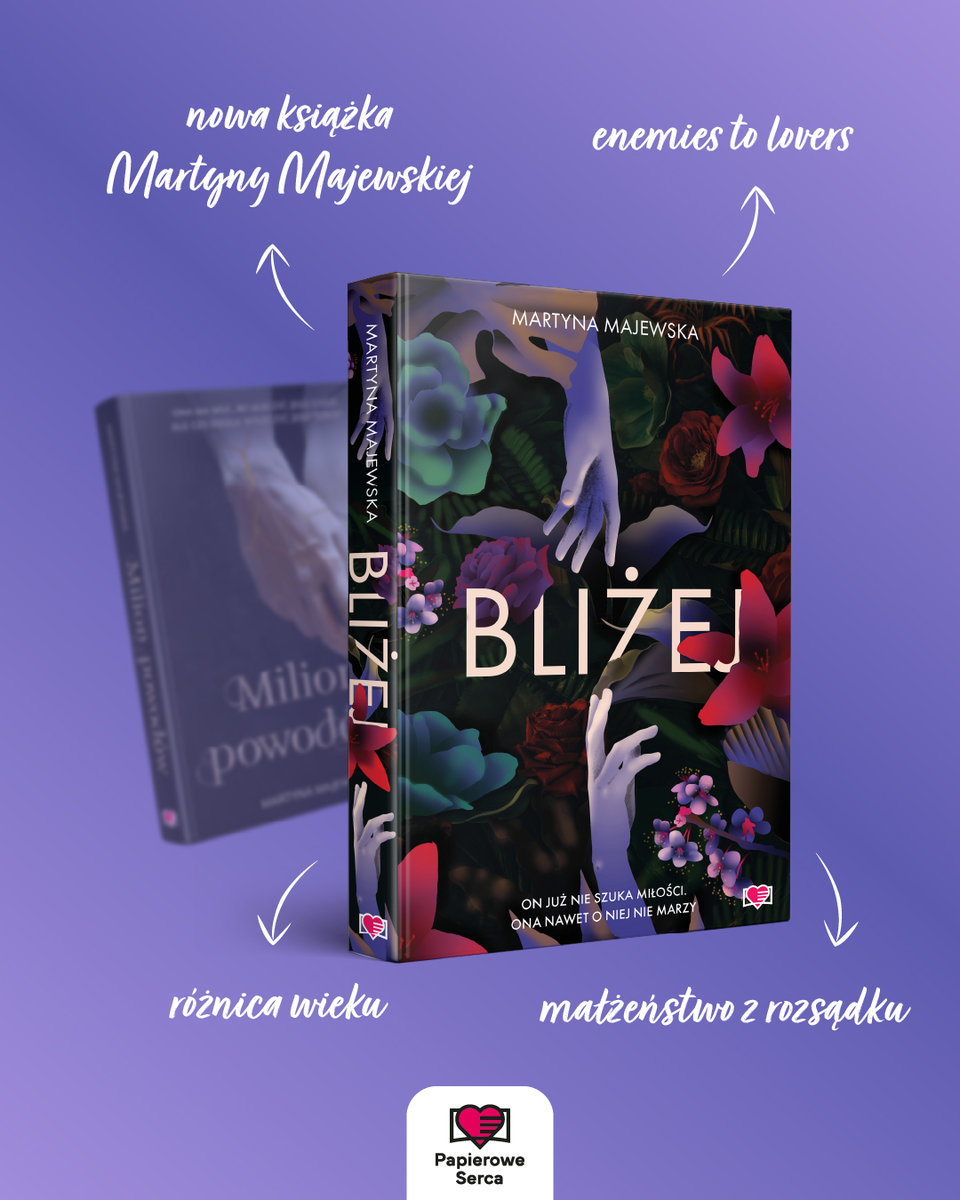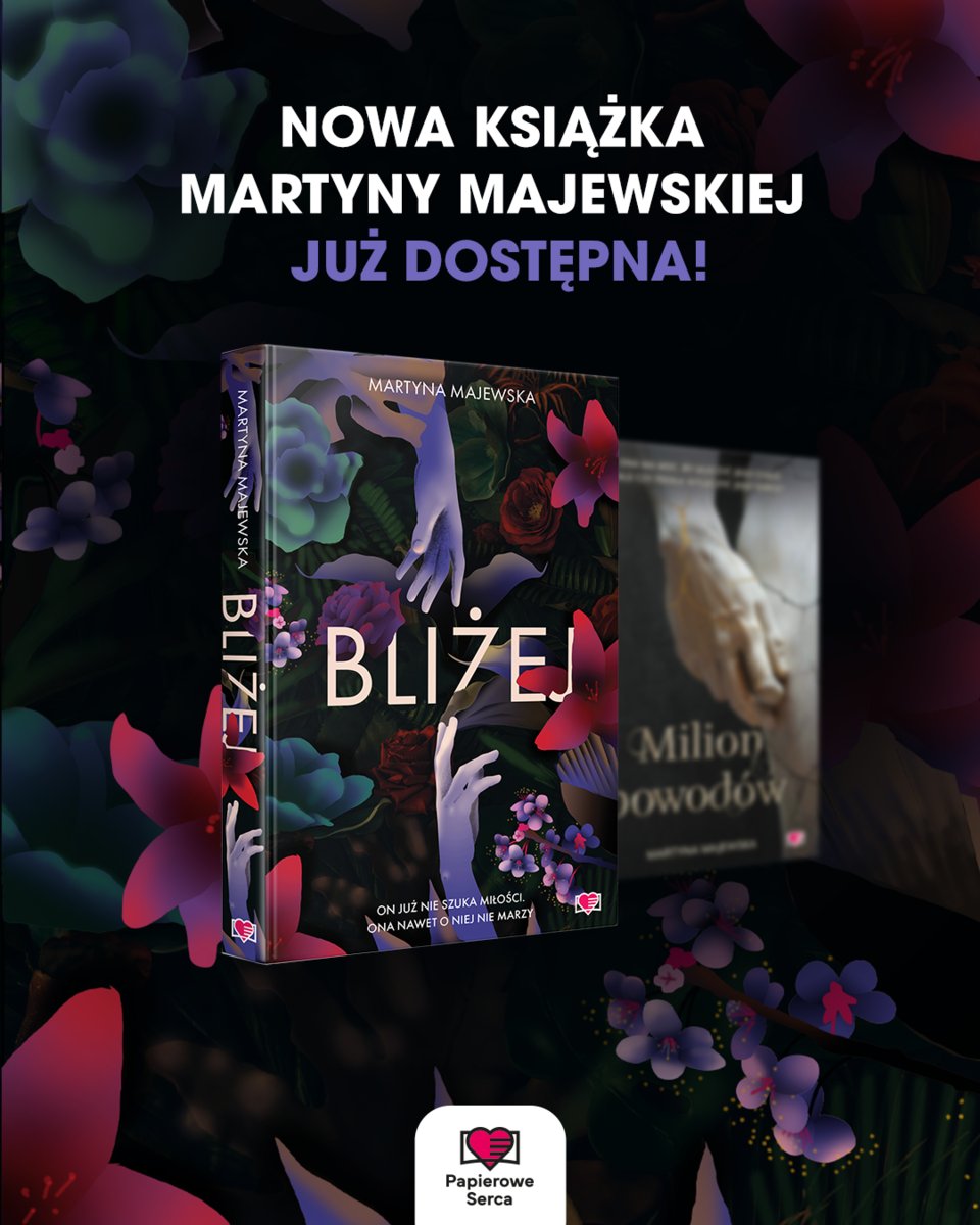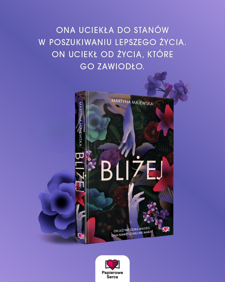 Ruby, imigrantka z krótką wizą i niespełnionymi marzeniami, trafia do Montany, gdzie los stawia na jej drodze Vincenta – mężczyznę, który po zdradzie narzeczonej szuka spokoju z dala od Nowego Jorku. Ich pierwsze spotkanie kończy się konfliktem, ale przypadek sprawia, że Ruby zaczyna pracę w jego domu. Ich drogi ciągle się przecinają, choć nie pałają do siebie sympatią. Jednak gdy Vincent poznaje prawdę o przeszłość Ruby, postanawia jej pomóc. To, co miało być układem bez emocji, szybko przeradza się w prawdziwą miłość – a przeszłość, której oboje próbowali uciec, powraca, grożąc zniszczeniem ich nowego początku. Bardzo bałam się, że autorka nie przeskoczy poprzeczki, którą ustawiła sobie w dniu wydania swojego debiutu. Jednocześnie liczyłam na to, że pokocham „Bliżej” równie mocno co „Milion powodów”. I wiecie co? I tak się stało. Pokochałam całym serduszkiem. Choć chciałam ją sobie dawkować czytając jednocześnie też inne książki, kiedy już wsiąkłam w tę historię, nie mogłam się oderwać. Rewelacyjna kreacja bohaterów, świetna fabuła, wątek trzymający w napięciu i mnóstwo motywów, które kocha każda romansiara. Uwielbiam pióro Martyny Majewskiej i po lekturze tej powieści nic się w tej kwestii nie zmieniło. Pisze lekko, ale rewelacyjnie oddaje emocje, nie żałuje kłód rzucanych pod nogi bohaterów, a wszystko to sprawia, że ich historia całkowicie pochłania czytelnika. „Bliżej” nie odstaje niczym od światowych bestsellerów tego gatunku. Kocham i ogromnie polecam!