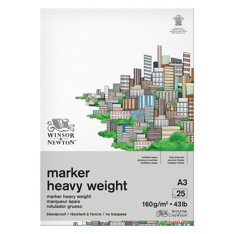Blok do markerów marki Winsor & Newton – Marker Heavy Weight. 25 arkuszy o gramaturze 160 g/m². Format A3.