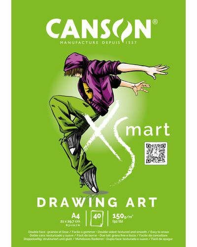Blok Canson XSmart Drawing Art - A4, 150 g, 40 arkuszyBlok XSmart Drawing Art od firmy Canson zawiera 30 arkuszy białego dwustronnego papieru, który z jednej strony ma wyraźnie ziarnistą fakturę, a z
